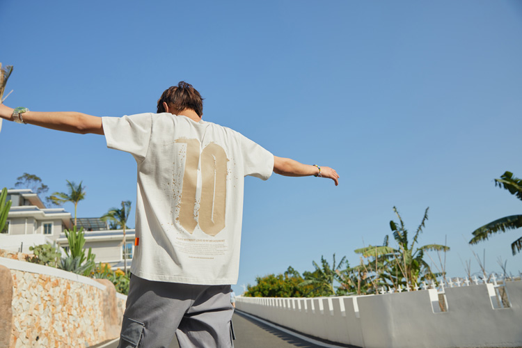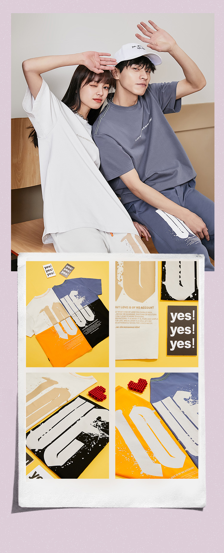 在款式上。略宽松版型,基本不挑身材。胸前是立体字母胶印印花、单侧侧缝Logo装饰贴布、背后love字母胶印印花,时尚休闲气息十足。