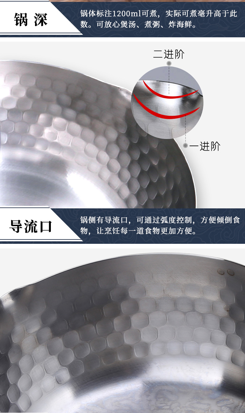 尺寸:直径18cm 锅深7.5cm 总长33.5cm、容量1.6L 锅身标注1200ml可煮,
