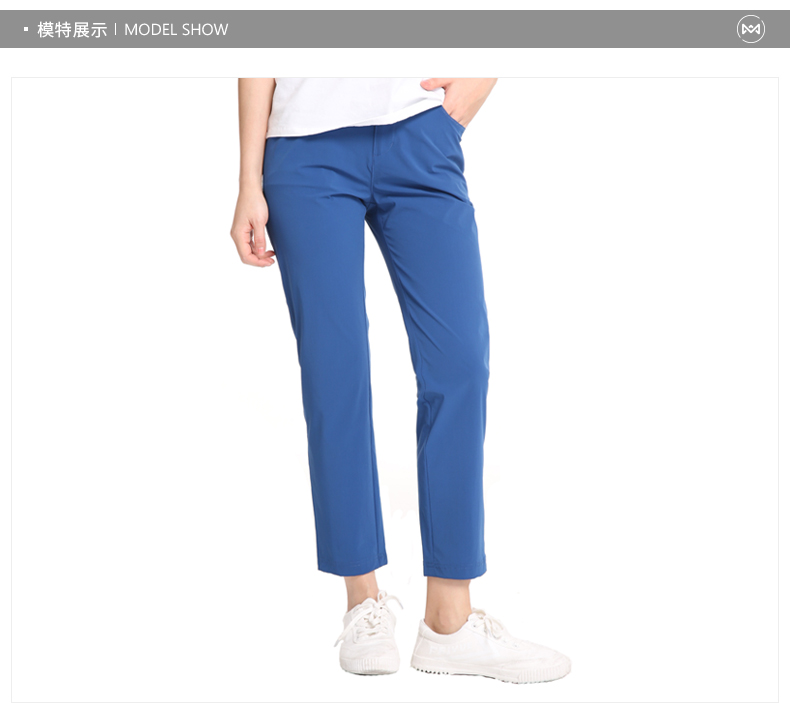 面料中还混有9.8%氨纶,使面料具有四向弹力,即上下左右都拥有弹性,伸展性好还抗皱,在腿部活动时没有拉扯紧绷感,具有良好的穿着体验。