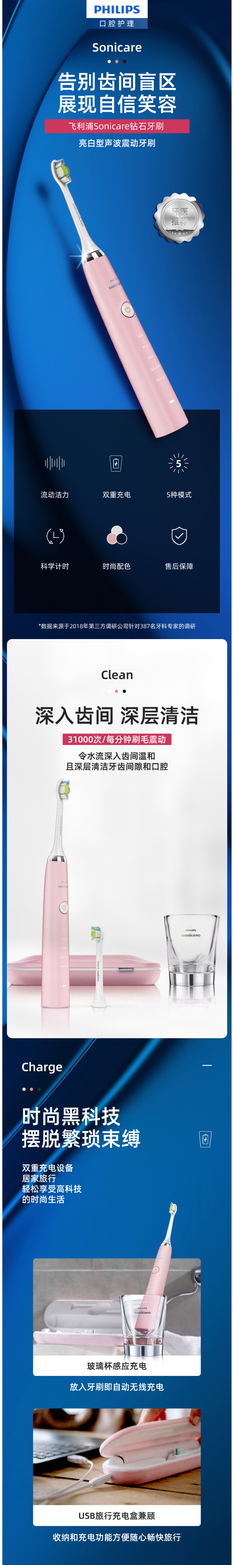 飞利浦钻石亮白电动牙刷的功能与配置: