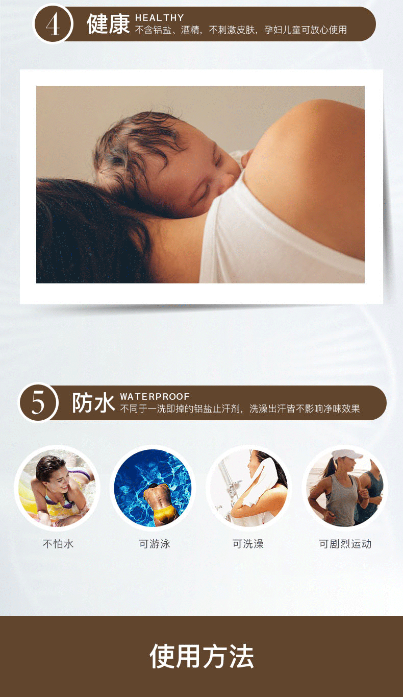 利用特殊保护控制膜包裹多种有效成分强力吸附于肌肤表面,在快速平衡环境的同时以恒定速度释放有效分子,渗透肌肤作用大于汗腺,7天内长效净味;不同于一洗即掉的铝盐止汗剂,无论是洗澡、游泳、运动都不影响净味效果。