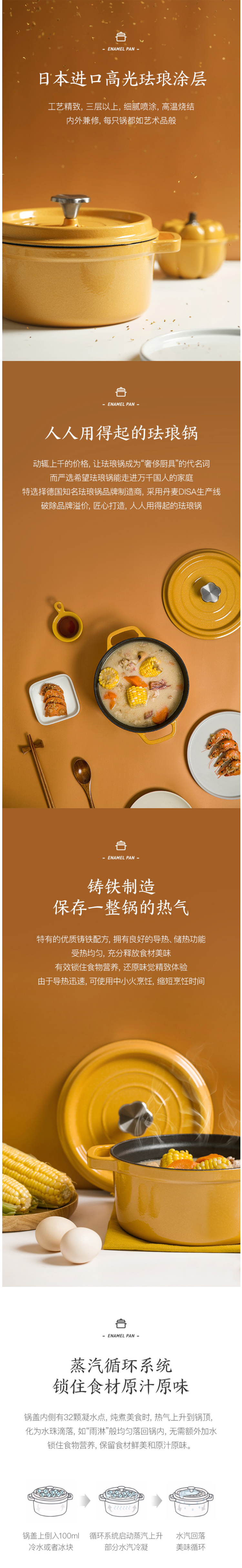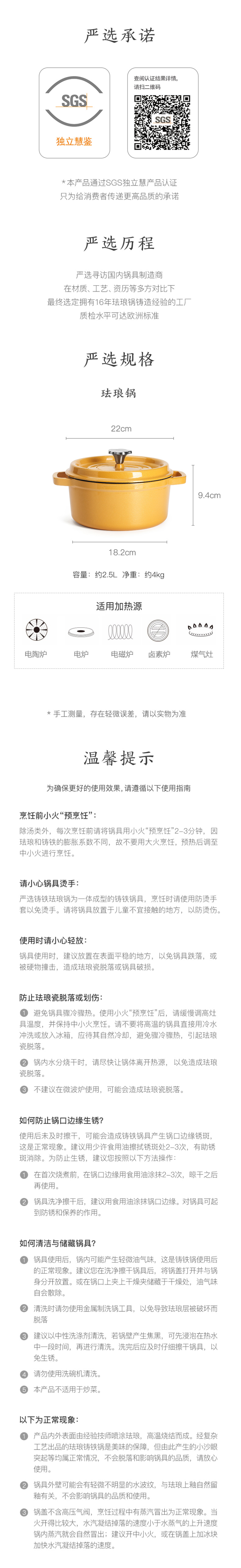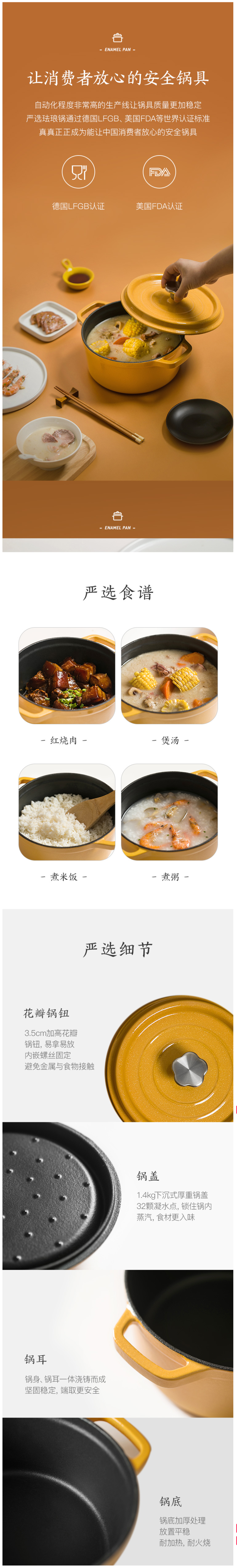 这款网易严选琅铸铁锅,主体采用厚实的天然生铁铸造,内外都融入了日本进口高光珐琅涂层,至少三层以上,细腻喷涂、高温烧结,呈现色彩鲜亮的外观-颜值高,同时储热功能良好,密封性强,导热均匀,无论炖、煮、焖、煲、烤都行,一锅多用。