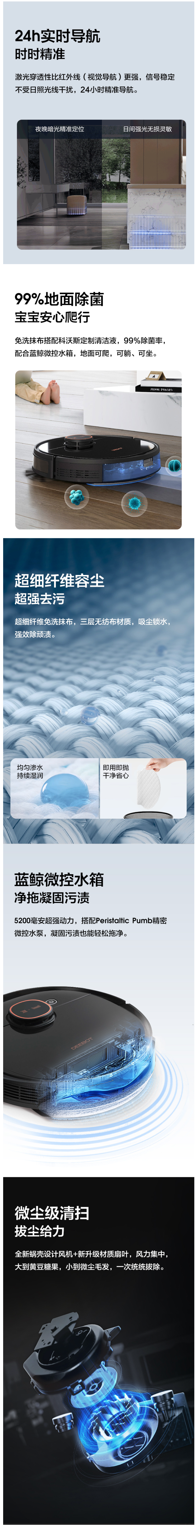 其它方面,可通过手机APP控制,设置拖地禁区、指定区域清洁、深度清扫区域,一切尽在掌控,满足各种需求,配有5200毫安大电量,续航时间超200分钟,还有好玩的语音功能,抖音上大火的“东北话扫地机器人”就是科沃斯。