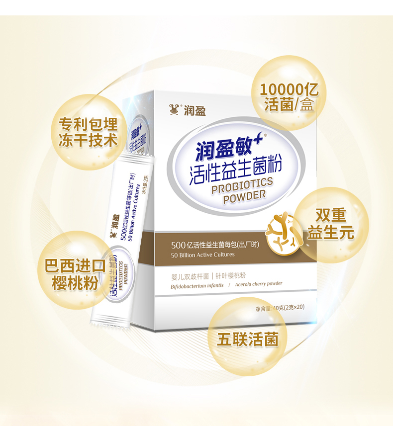 这款润盈敏500亿益生菌冻干粉,富含五种益生菌—副干酪乳杆菌、婴儿双歧杆菌、罗伊氏乳杆菌、乳双歧杆菌、鼠李糖乳杆菌,成人儿童通用。