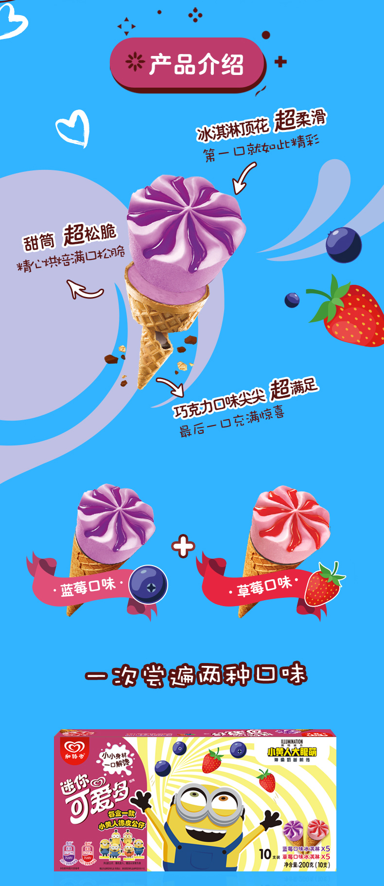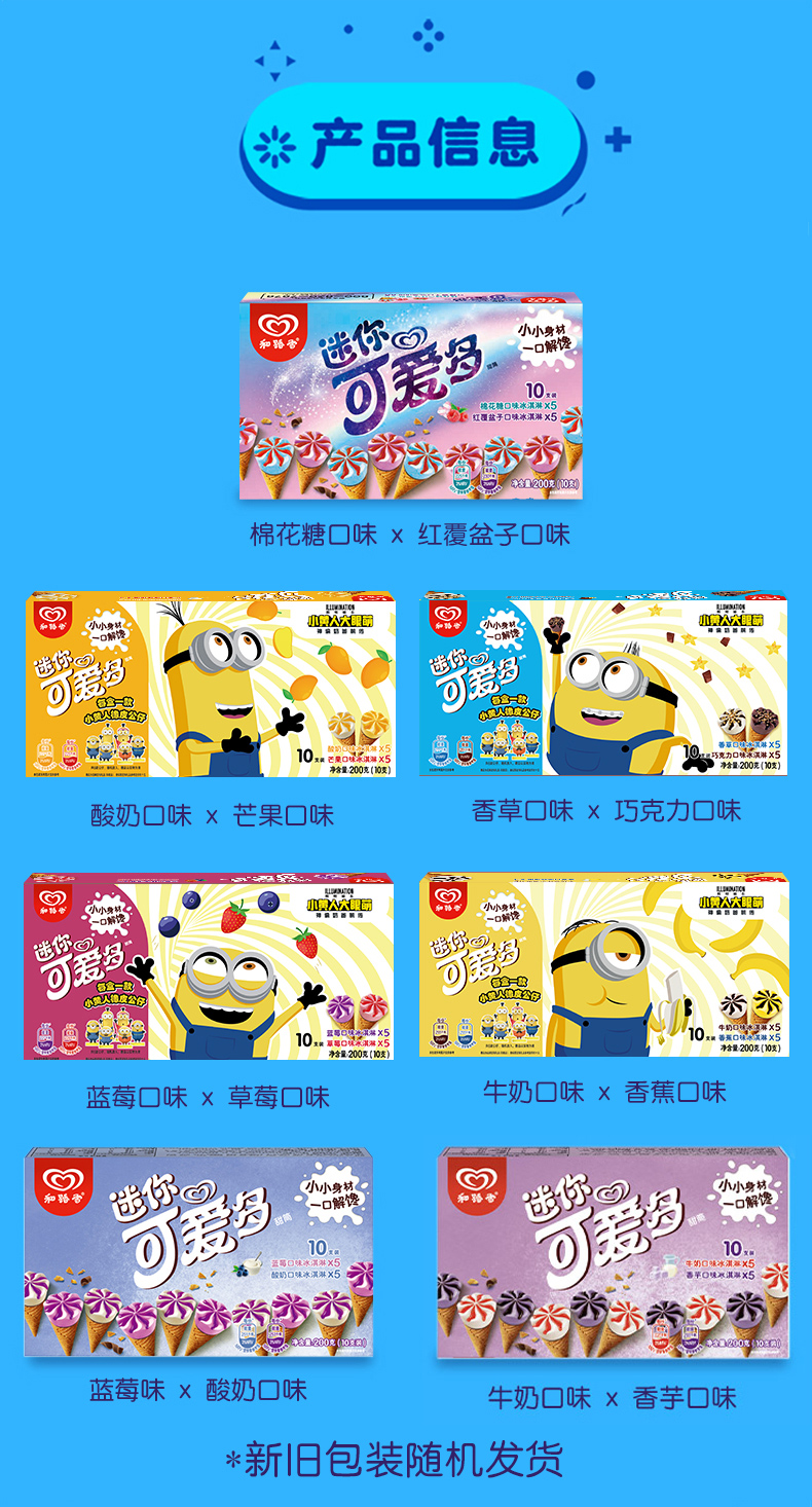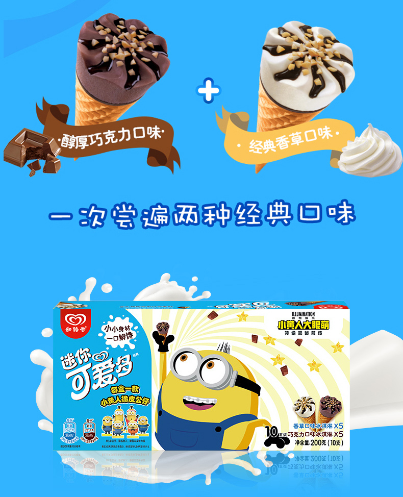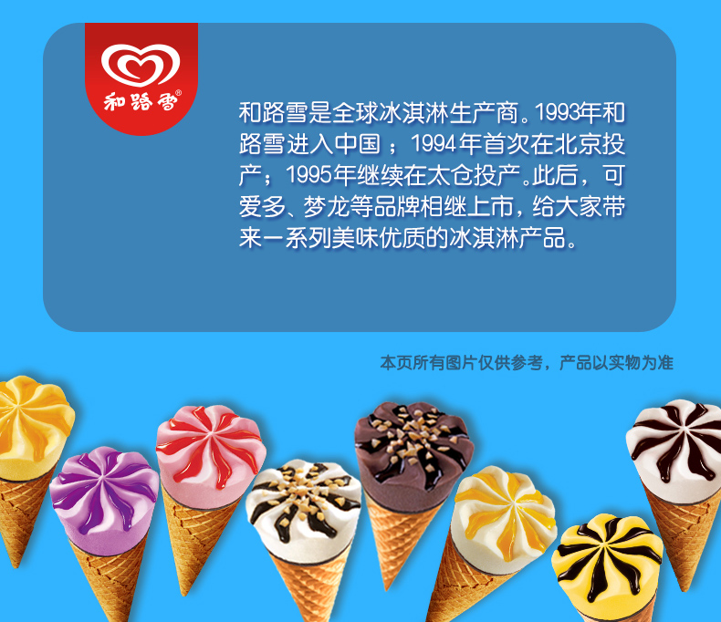 和路雪是全球冰淇淋生产商。1999年和路雪进入中国;此后可爱多、梦龙等品牌相继上市,给大家带来一系列美味优质的冰淇淋产品。迷你可爱多,“小身材大味道”,一次尝遍两种味道,甜蜜下午茶,追剧好搭档。迷你可爱多甜筒,红豆口味冰淇淋/抹茶口味冰淇淋。