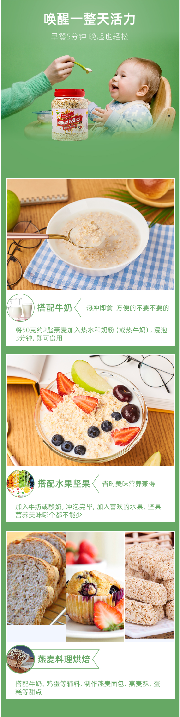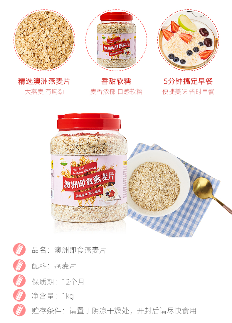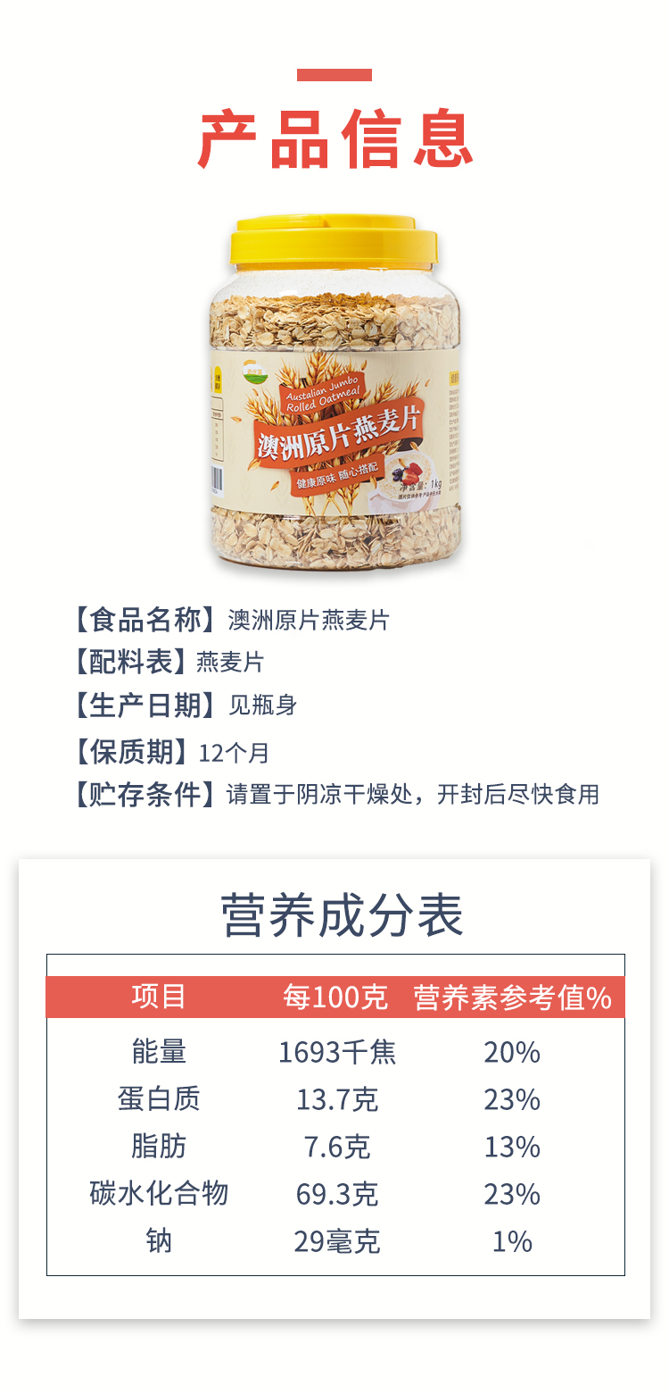 编辑家里常备燕麦,早晨热牛奶冲泡即食,非常方便,主要是早晨可以多赖会床。空口吃味道也是非常香糯,可搭配水果、坚果、酸奶等一起食用,也可做为烘焙料理食材。精致大罐装,拿取存放都非常方便。需要注意:要避免长时间高温蒸煮,以防止维生素被破坏。
