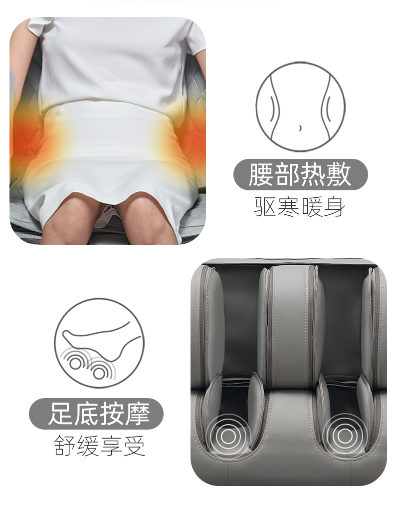 值得一提的是,此款具备3D仿生机械手、体型监测、SL型导轨,从配置上来说,属于中高端按摩椅之列了。