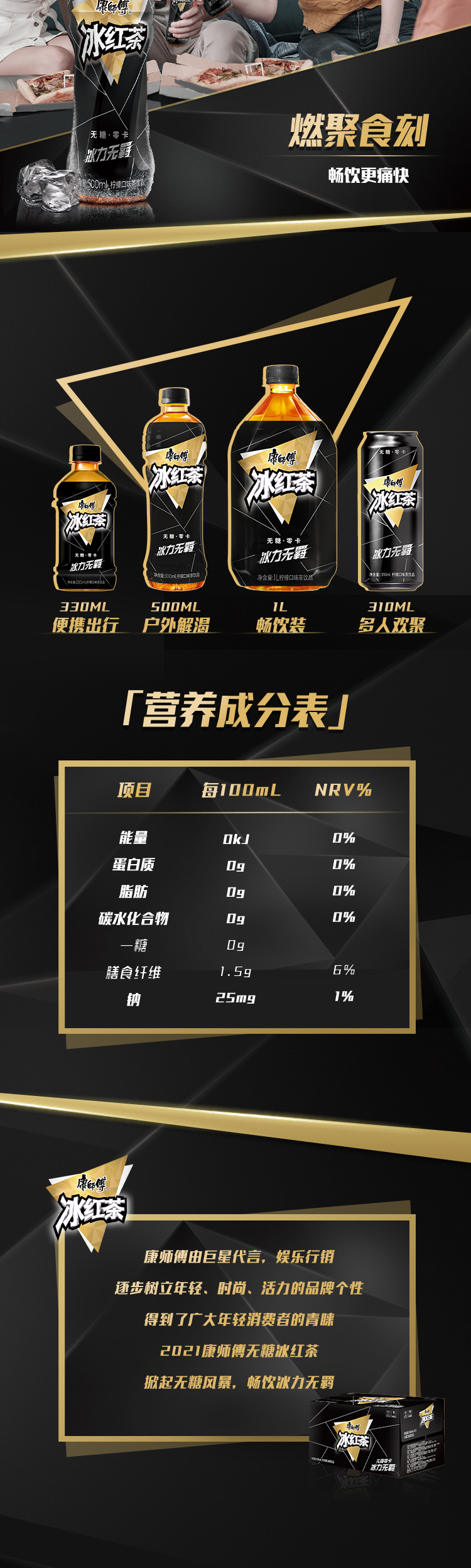 康师傅无糖零卡冰红茶,以红茶为主要原料,搭配清新的柠檬,赤藓糖醇的新代糖制作,而且还添加了膳食纤维,饮用更加健康。