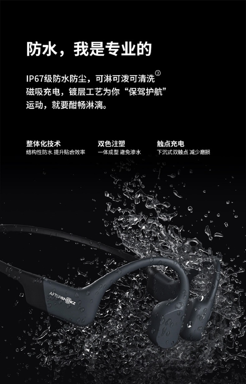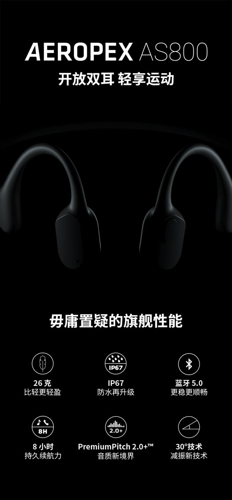 人体工程学U型后挂式设计,在激烈运动中也可稳固不移位,使用起来更舒心更安心。全机身钛合金耳机框架,经过10000次弯折测试,任意拉伸不变形,无孔漏音技术,长条形结构扬声器增加贴片面积,30°倾斜技术,有效降低了震动困扰,使得低频更细腻,减低了骨传导耳机的漏音尴尬。