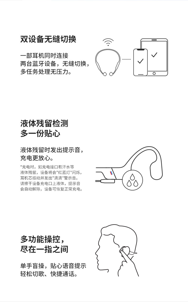 1 安全不入耳,随时听到外界声音,出行、户外、运动更加安全。