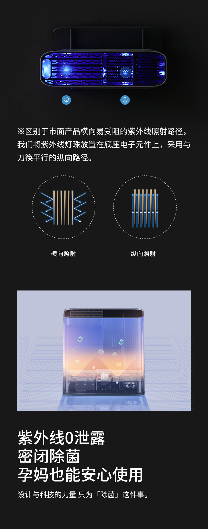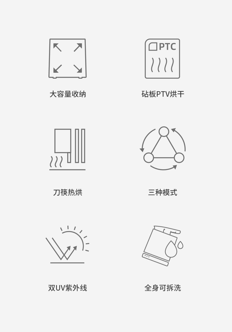 紫外线杀菌:相比普通款赠加了双光源紫外线照射,360°全方位无死角、0泄露密闭空间高效除菌;