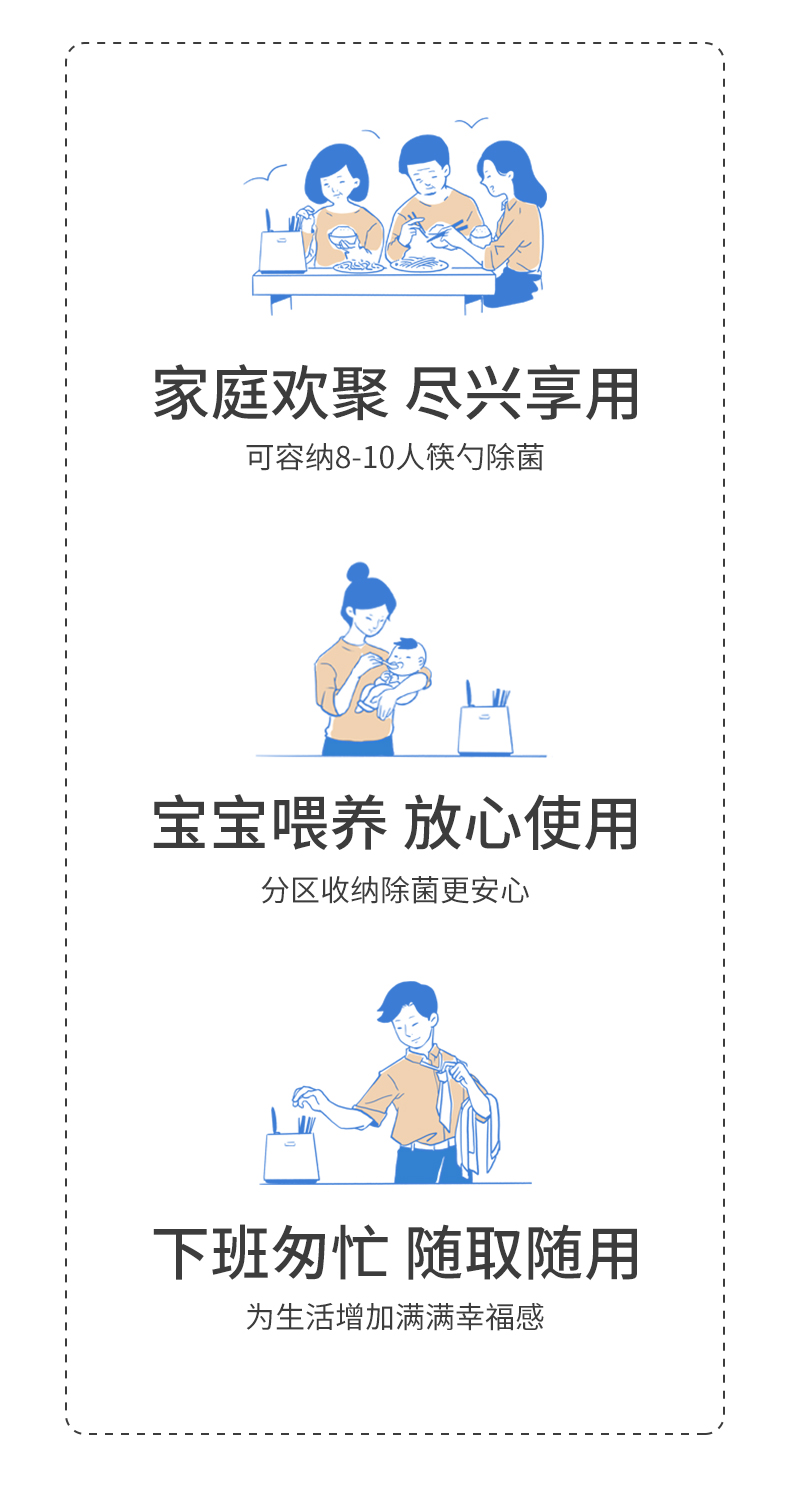 有餐前60秒快杀模式、餐后45分钟除菌模式、适合梅雨季节的4小时巡航模式,长按即可开启。可满足家庭卫生需求。