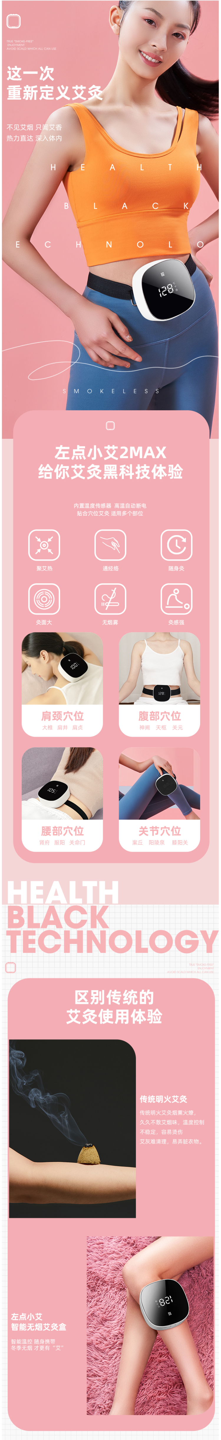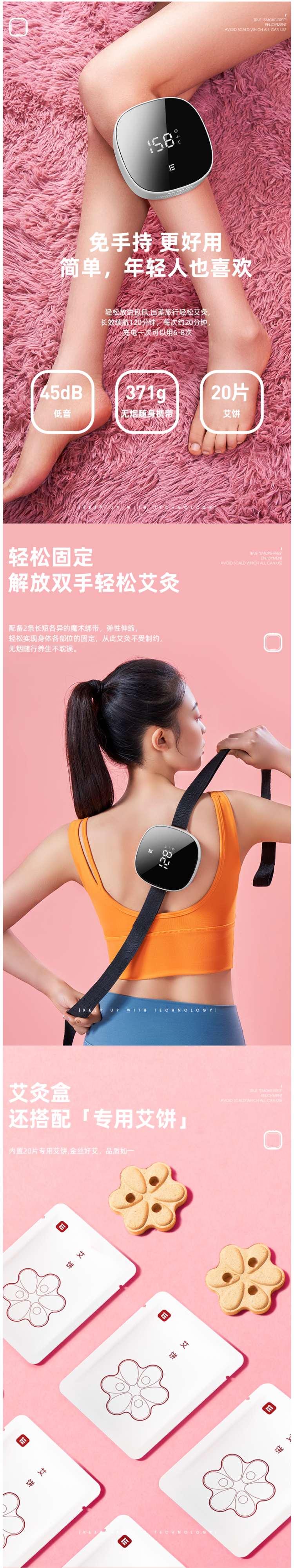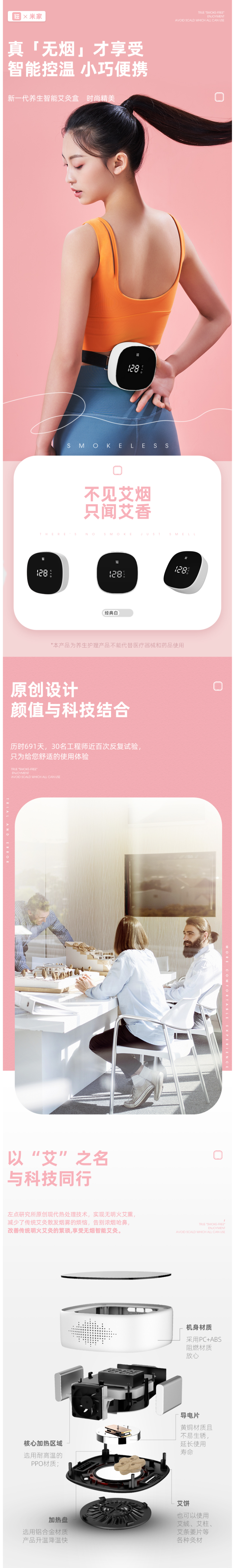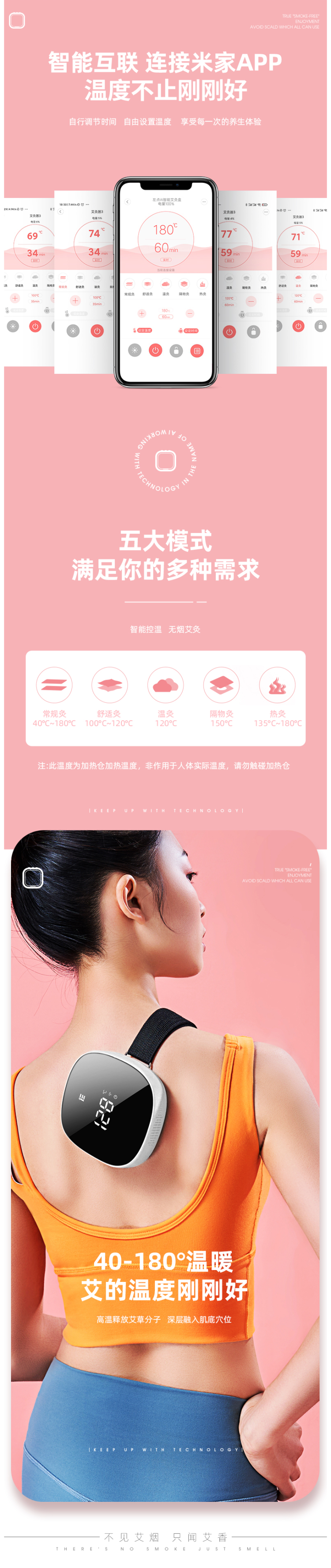 无烟艾灸、智能控温、无线便携、可连接手机。