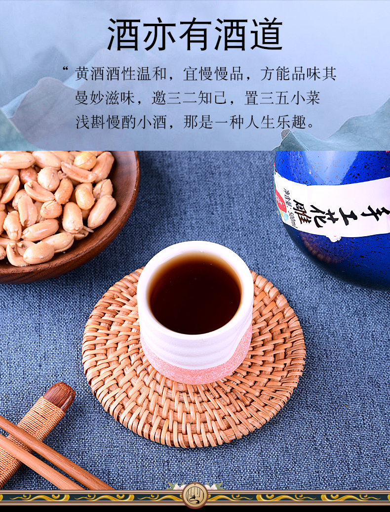 这款正宗绍兴黄酒,以糯米、小麦、鉴湖水为原料,使用传统的酿制技艺,农历七月制酒药,八、九月制麦曲,小雪做酒酿,大雪前后投料开酿,用独特的复式发酵工艺发酵90余天,翌年立春开始压榨、煎酒,然后泥封贮藏。
