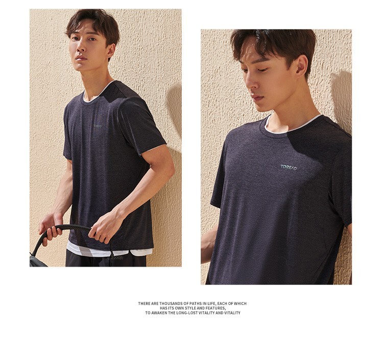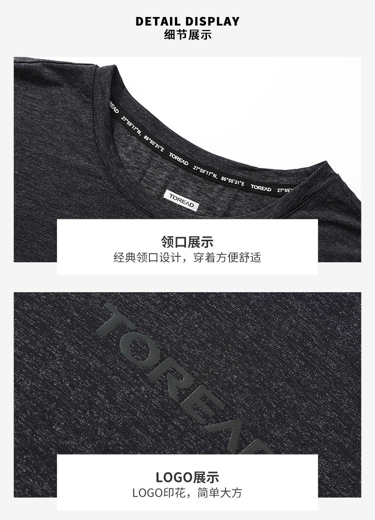 这款探路者男运动T恤是2020年的春夏款,使用锦纶+聚酯+氨纶的混纺速干面料,在瞬间接触皮肤时有明显凉感,有良好的的吸湿排汗功能,能将身体汗液排出体外,保持运动时身体舒爽不粘腻。