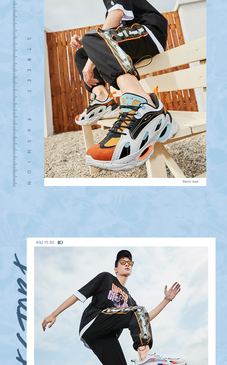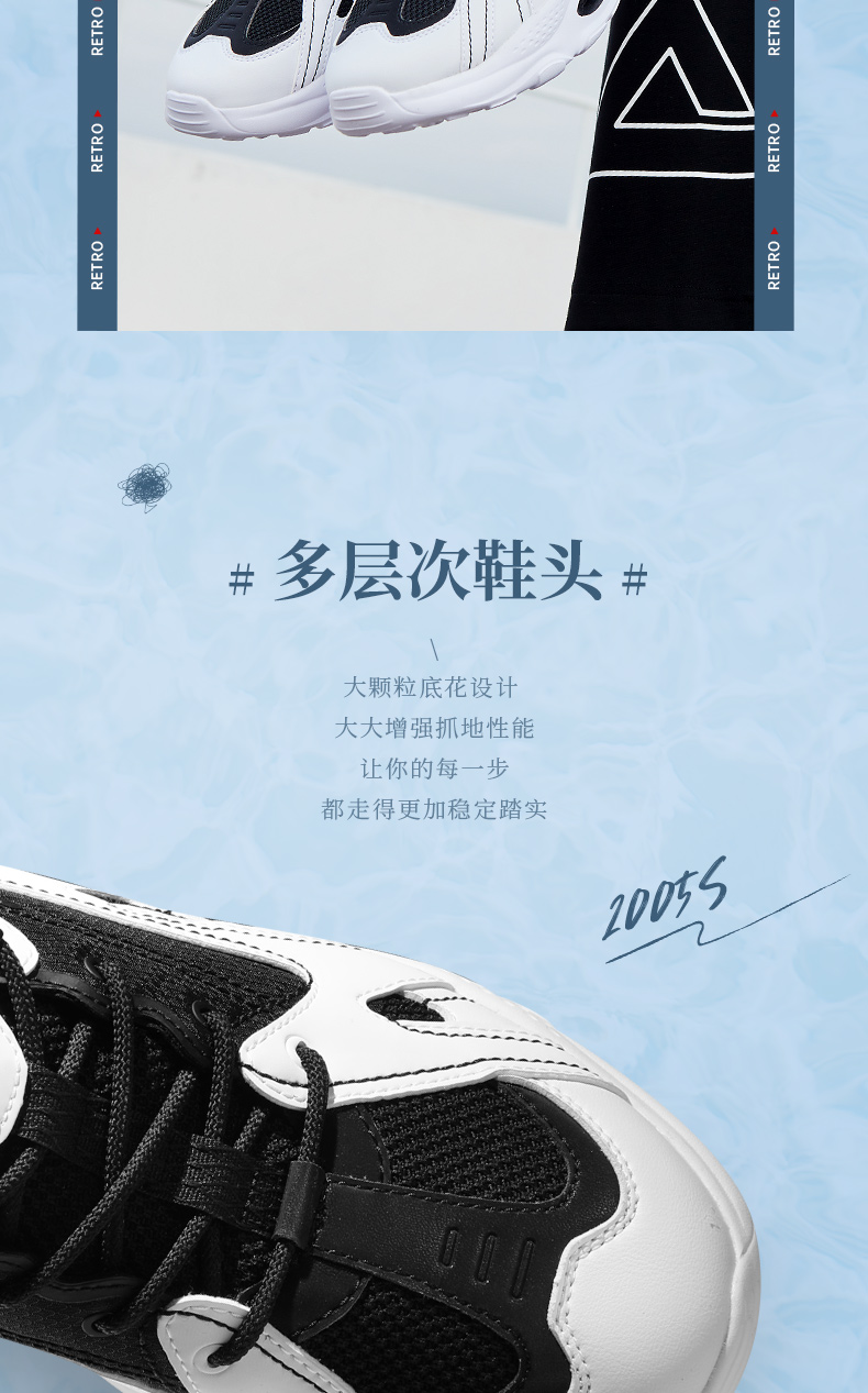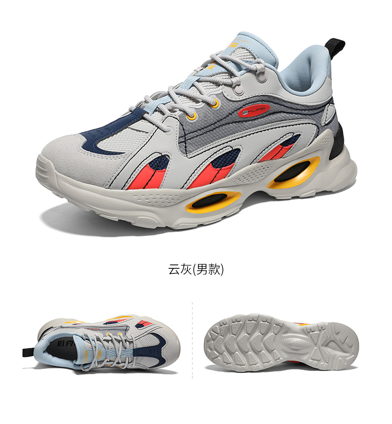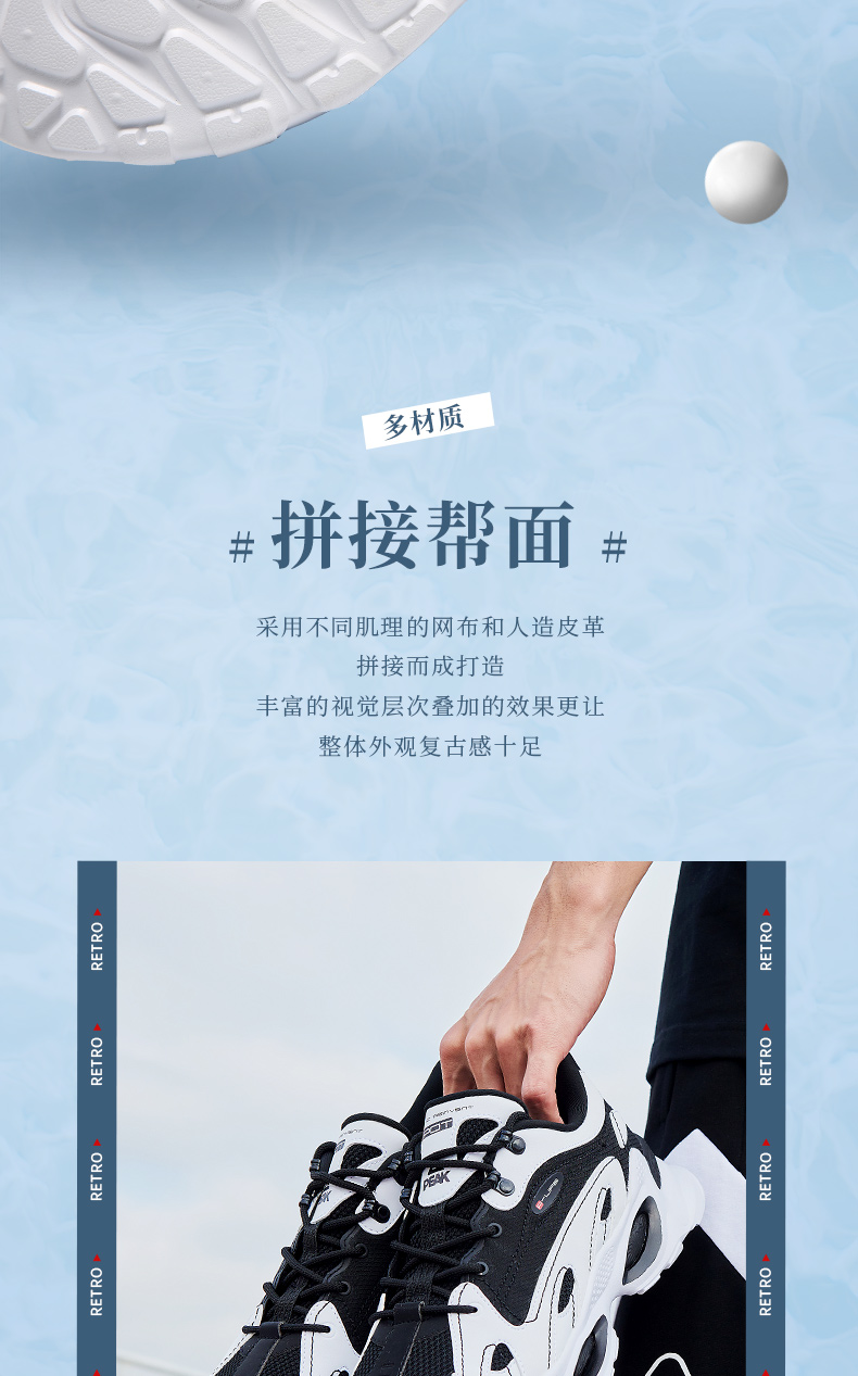 这款是复古老爹鞋。在经典101鞋型基础上设计,采用不同肌理的网布和人造皮革拼接而成打造,丰富的视觉层次叠加的效果更让整体外观复古感十足,同时具有良好的包裹性和透气性,穿着舒适。