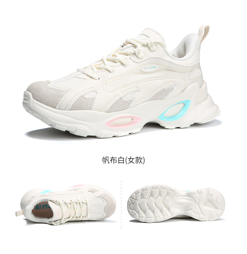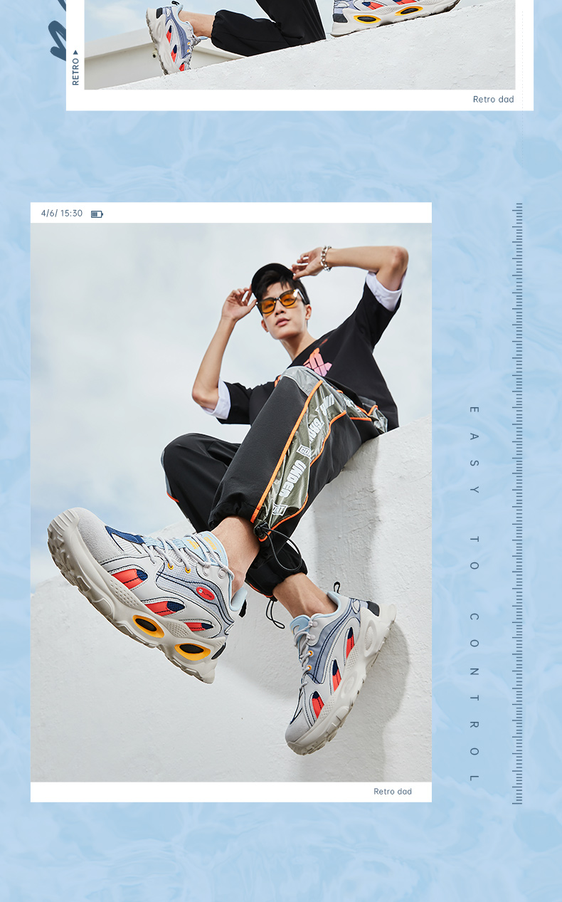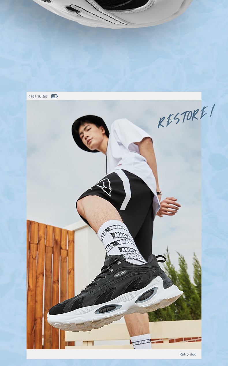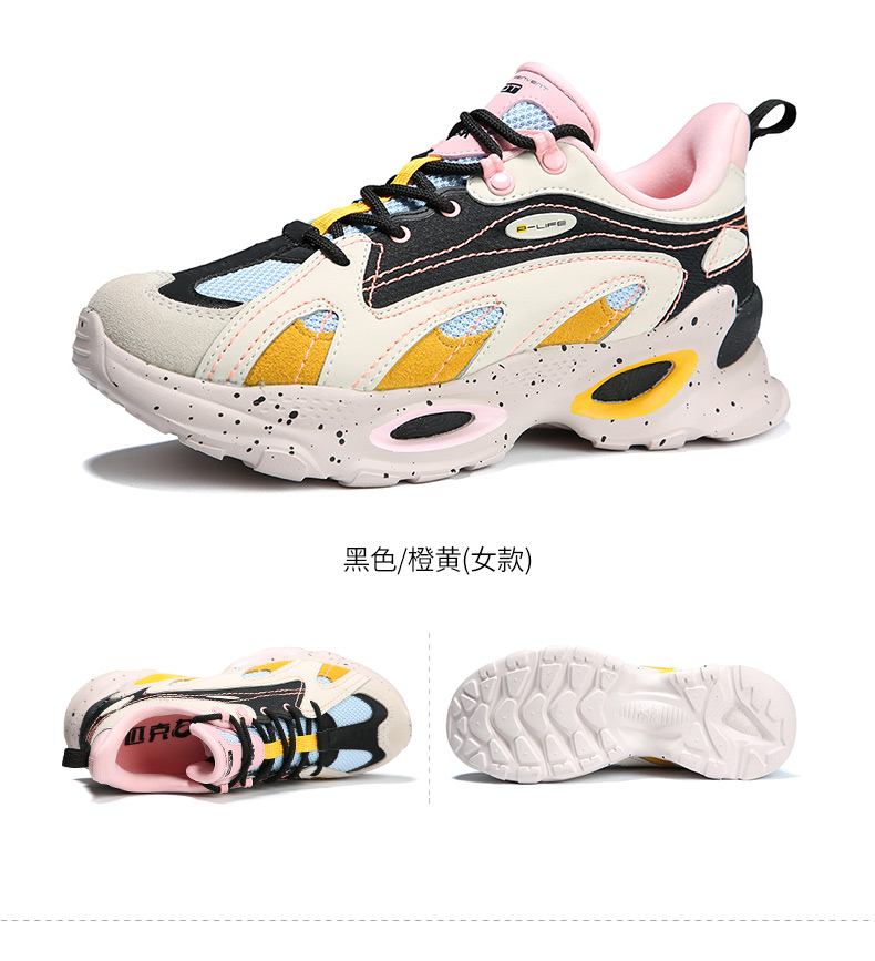 这款是复古老爹鞋。在经典101鞋型基础上设计,采用不同肌理的网布和人造皮革拼接而成打造,丰富的视觉层次叠加的效果更让整体外观复古感十足,同时具有良好的包裹性和透气性,穿着舒适。