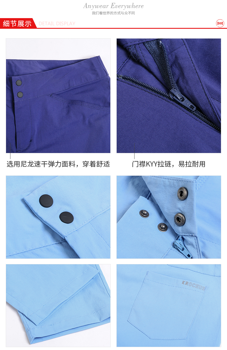 这款地球科学家女透气速干裤,使用靠谱的抗撕裂速干尼龙面料,耐磨抗撕裂不易破损。尼龙纱线呈多股中空状,中空管道快速吸水快速向四周分散,加大挥发面积达到快干,通常在雨天淋湿后不到1小时就能干。