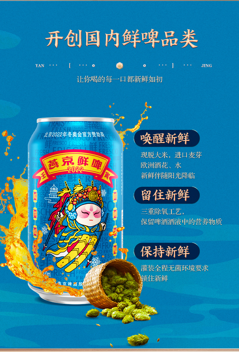 10度冬奥联名鲜啤 ,开创三重除氧工艺,保留啤酒原液中的营养物质,无氧罐装,实现零氧化。进一步提升燕京鲜啤的新鲜度,浓郁麦芽芳香扑鼻,清爽畅快的口感沁人心脾,新鲜鲜美的感觉回归自然,质量上乘,口感新鲜。