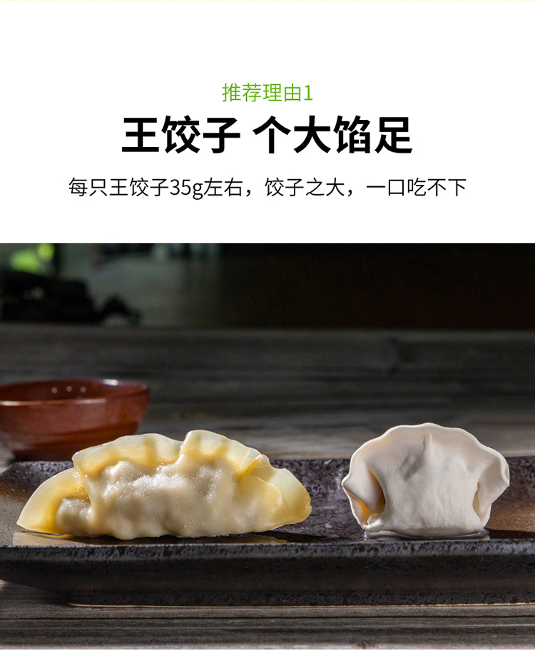 1.个头大,单只有35g,是一般饺子的1.75倍,日常500g的思念或者三全,我要一袋半才能吃饱,这个一袋就行,可能是给胃形成了错觉吧,吃了这么多