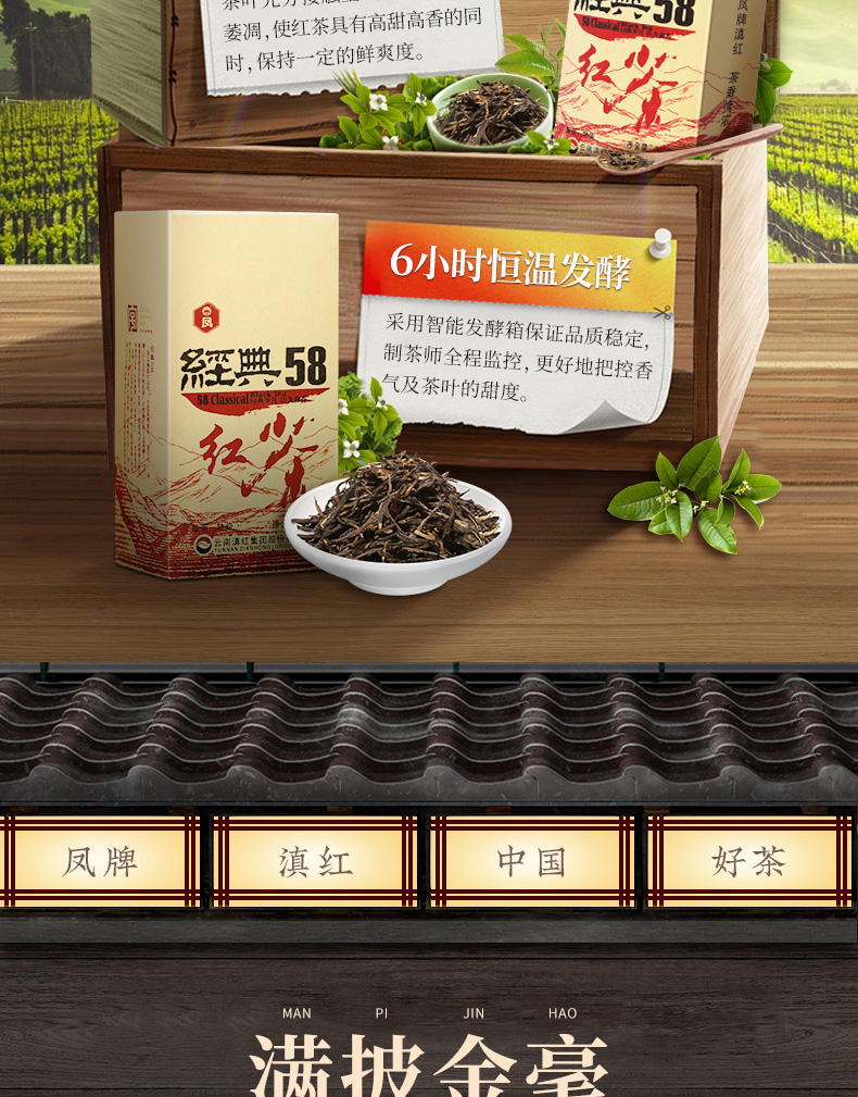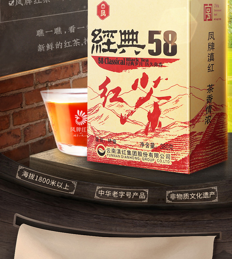 凤牌是国内最靠谱的红茶品牌之一,经典58是凤牌的入门级口粮茶,因为1958年滇红红茶在伦敦拍卖会上拍出红茶历史最高价,“凤牌滇红”惊艳世界。“凤牌经典58”为了纪念1958年而生。