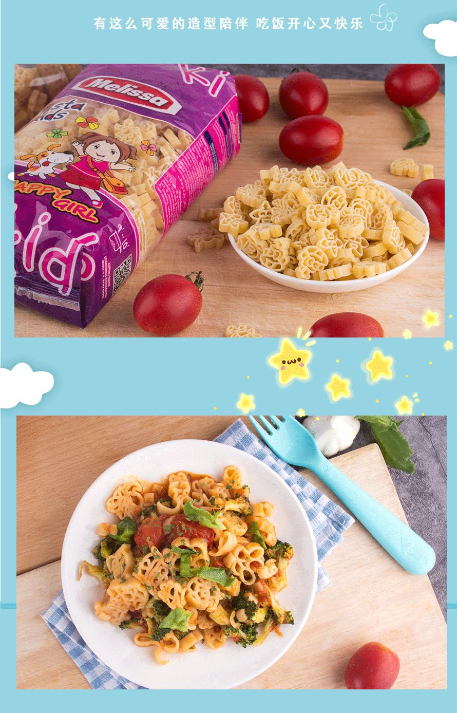 有萌小妹儿童意大利面500g、海底世界儿童意大利面500g可选