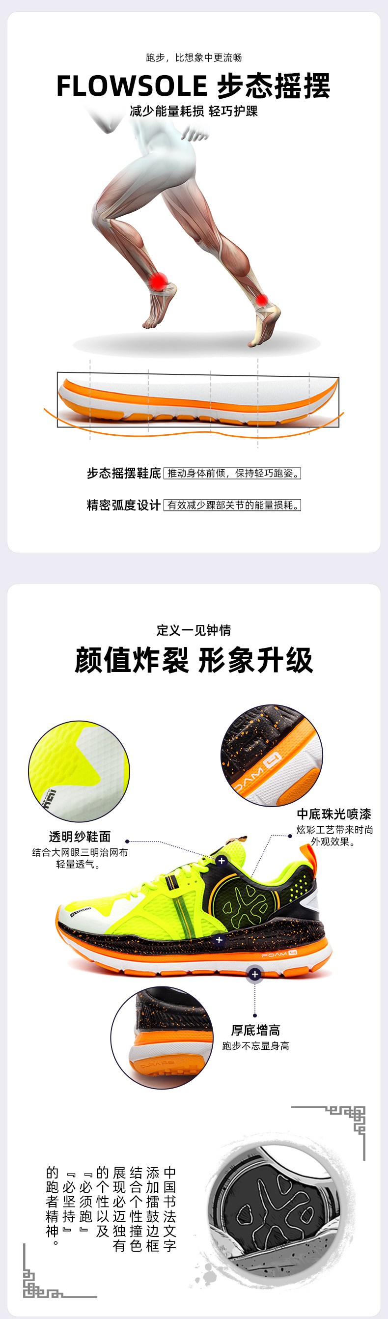 由TPU和大网眼三明治网布制成的透明纱鞋面,透气性好、包裹性强。还使用了3M反光材料,提升夜跑安全性。