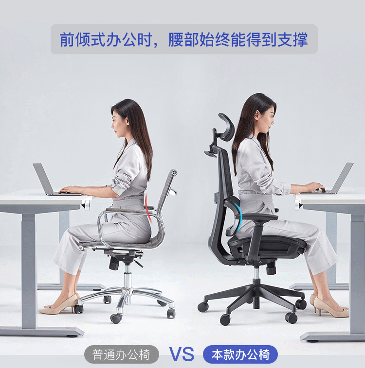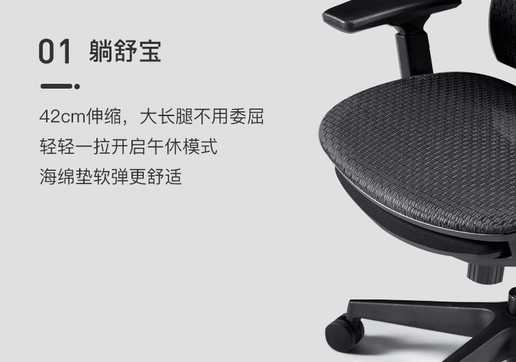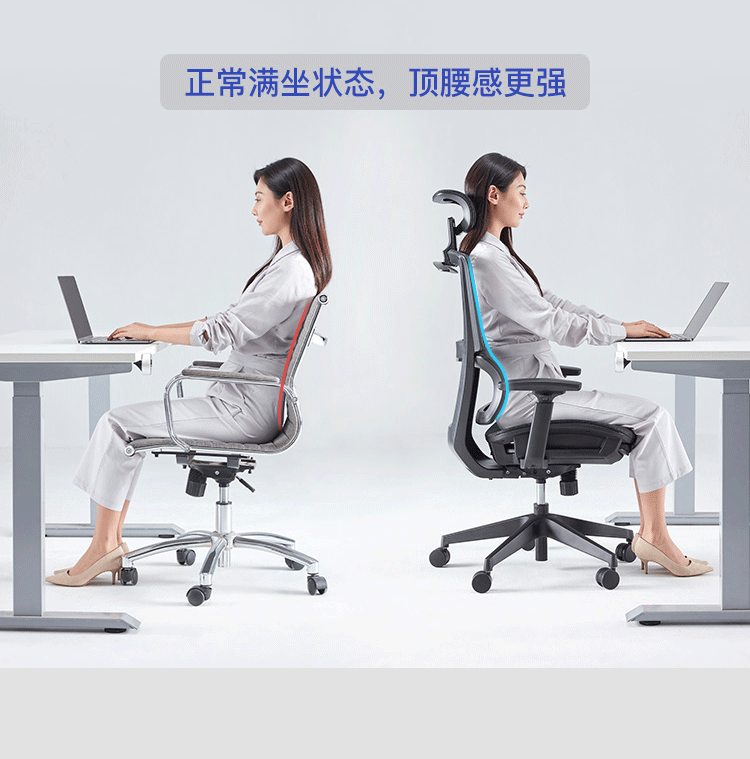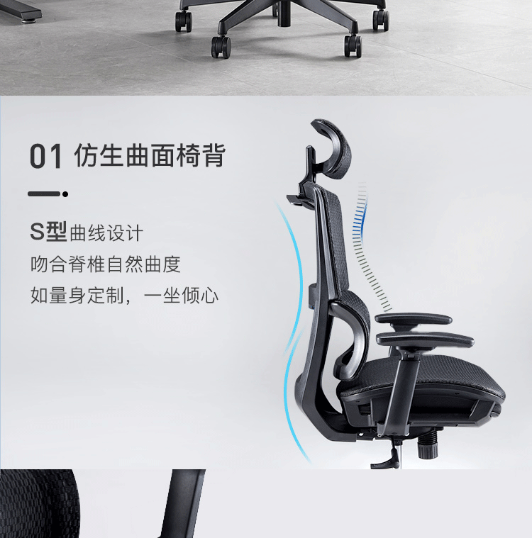 这款座椅的椅身选择的是高弹力进口网布,久坐也能保证透气舒适的坐感,S型曲线的椅背设计可以很好的贴合腰部和臀部曲线,支撑给力,随心调节的5段倾仰锁定椅背久坐不累,也可以通过阻尼调节器根据自身体重和坐姿调节椅背倚靠时的阻力大小,座椅的高度可在上下6cm范围调节。