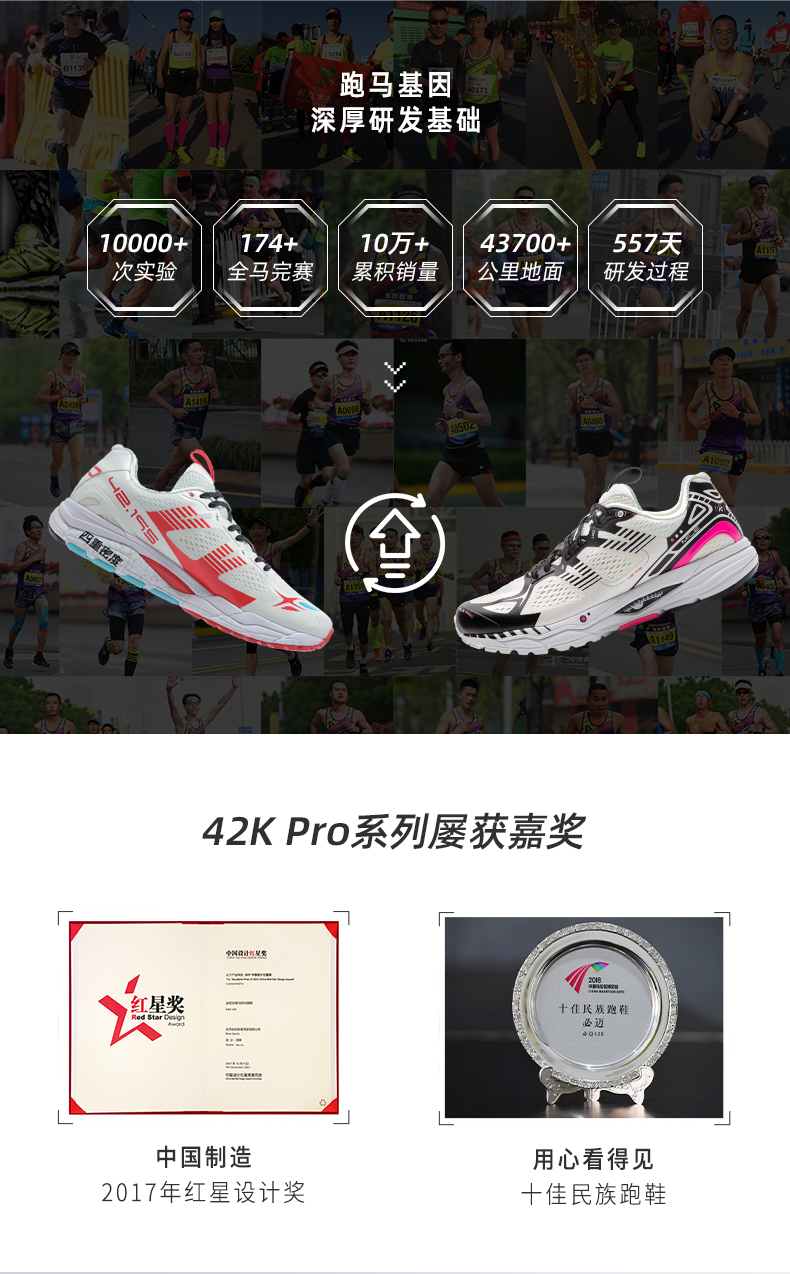 这双是2021年初上市的42公里新款专业马拉松跑步鞋,专为一般跑步鞋后半程会动力不足的问题所设计,能更持久支撑,后劲强悍。