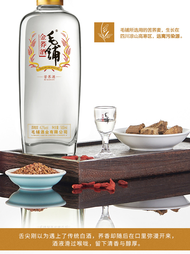 这款毛铺金荞是其中高端的苦荞酒,选用优质苦荞酿造,苦荞集七大营养素于一身,被誉为“五谷,三降食品”,是自然界甚少的药食两用作物,多种植在海拔1200-3500米的高寒山区。在造型和外观都融入了苦荞元素,自饮送礼均合适。