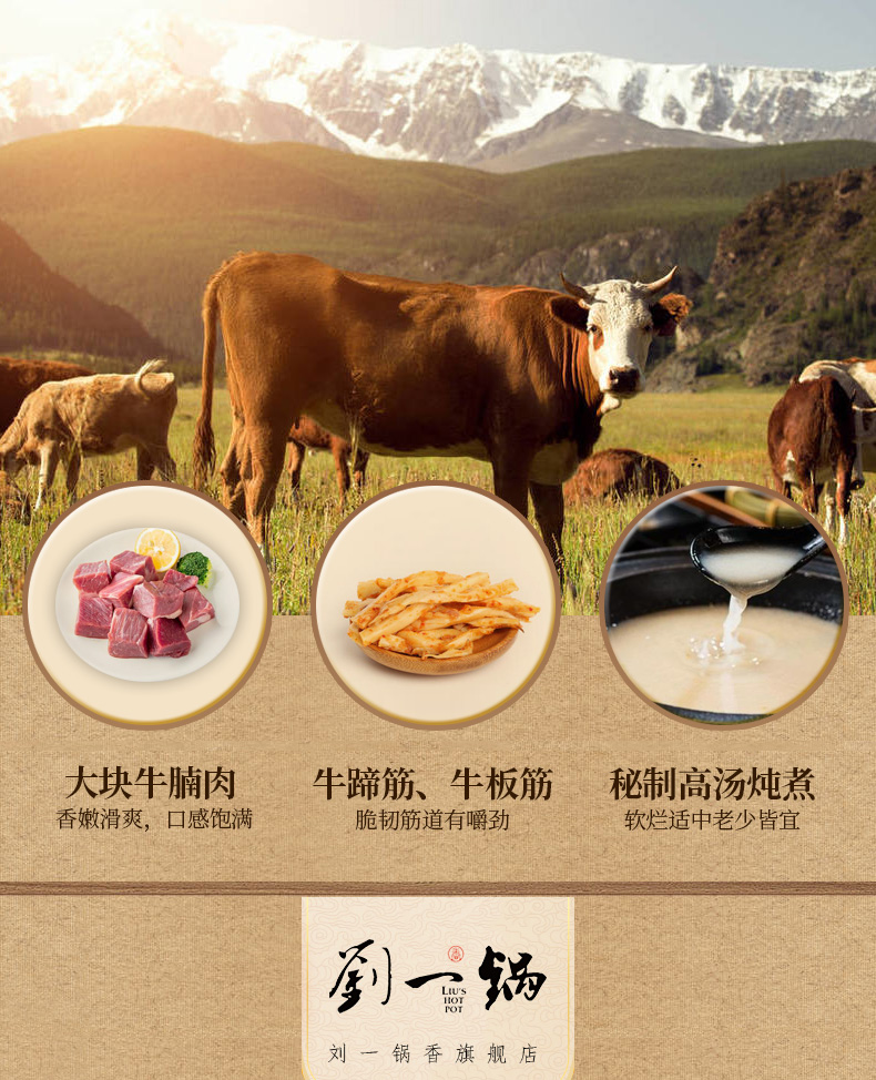 天猫刘一锅香旗舰店118元,可领20元优惠券,实付98元到手,刘一锅筋头巴脑,精选大块牛腩、牛蹄筋、牛板筋、秘制高汤搭配36种中草药料包熬制,肉质软嫩,汤浓醇厚味道鲜美。加热即食,还可自行搭配各种食材,吃起来更过瘾。