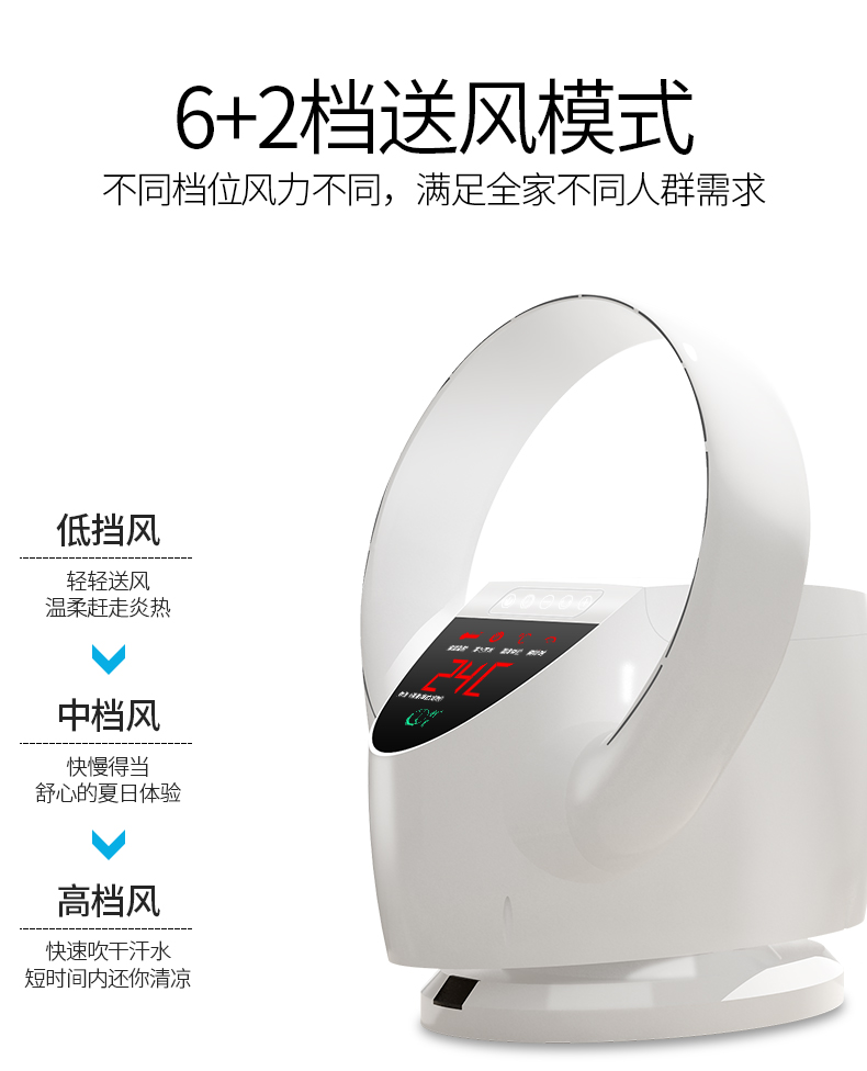 拥有6+2档送风模式,不同档位的不同风力,满足不同人的需求。有强劲风、睡眠风、自然风,档位包括低档风、中档风、高档风。