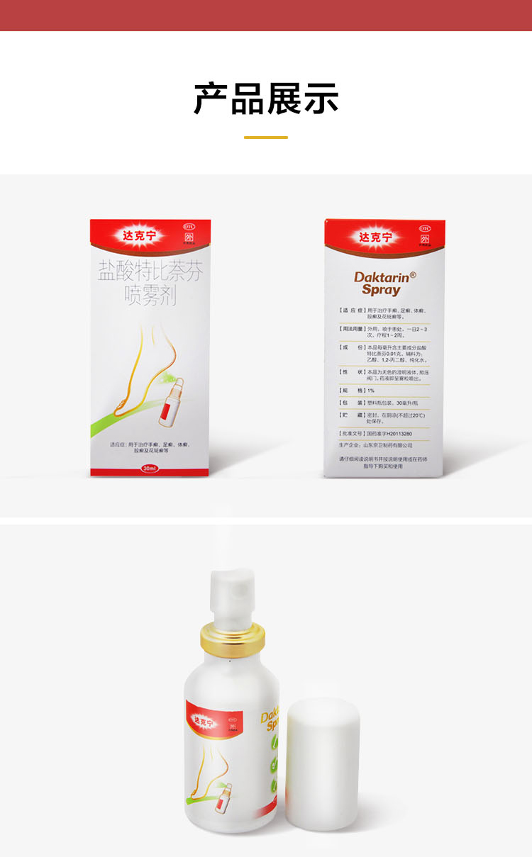 这款达克宁 盐酸特比萘芬喷剂,针对症状专门研制,主要成分盐酸特比萘芬,能深入杀菌专治脚气,液体制剂,特含酒精,喷涂后能快速渗透。