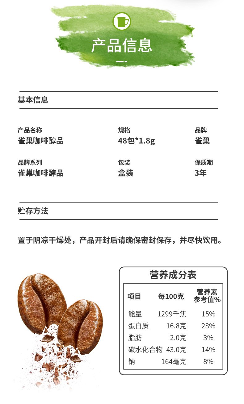 PS:这个是无蔗糖、无奶的特浓黑咖啡,真的是很苦的,适合咖啡爱好者以及减肥人士。