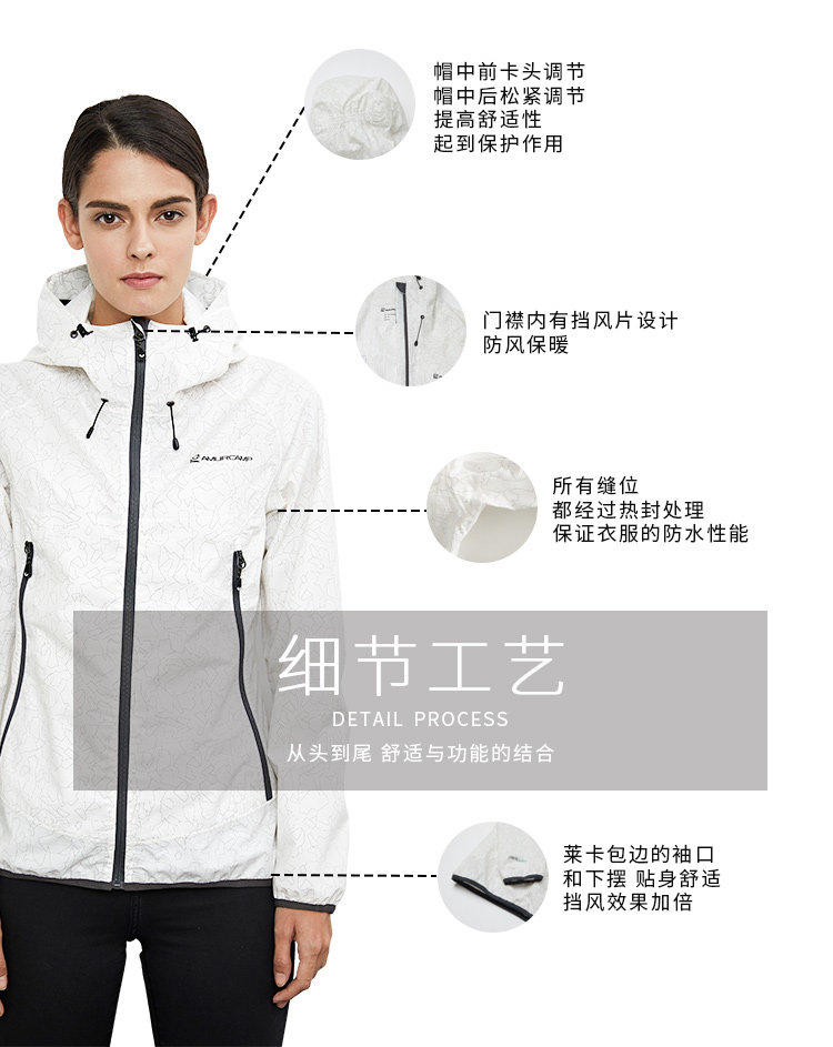 在版型方面,纸感冲锋衣是直筒修身版型,袖口与下摆都是莱卡弹力包边,避免灌风和进水。细节方面,主拉链增加挡风片设计,拉链顶部带防夹到肉的包边,增加舒适度且保暖也更好,两侧插袋都带拉链。
