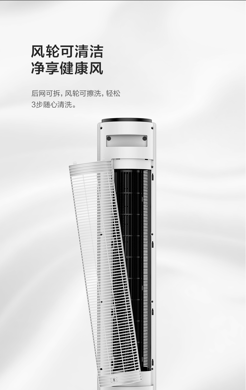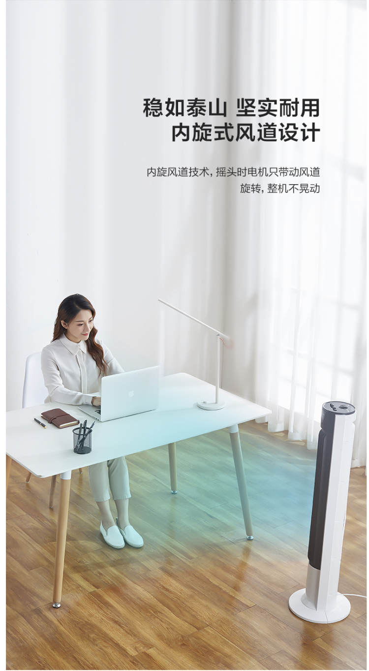 加长加宽出风口,配合60°广角送风,出风更聚焦送风距离更远。使用直流无刷电机,模拟自然风搅动室内空气,转速平稳,风质柔和更舒适。