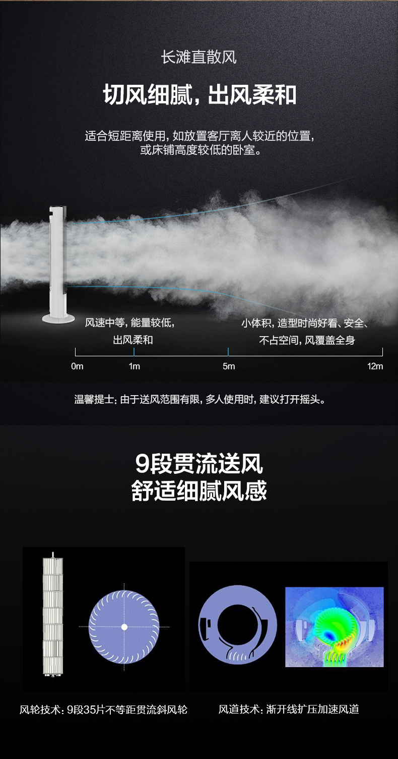 塔扇又名对流扇,根据气流学原理,让室内与室外空气形成立体交换系统,即使没有扇页也同样可以形成气流的循环,适合有老人及小孩的家庭。其360度全方位送风,让房间无送风死角,让人感觉舒适。因此塔式风扇的价格都要比台扇贵一点。