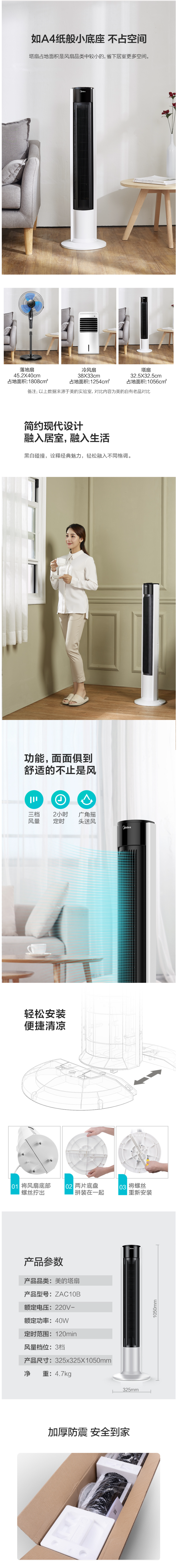 能远程遥控控制,可2小时定时,高度1050mm,底盘直径325*325mm,也就一张A4纸大小,节省空间不占地方。