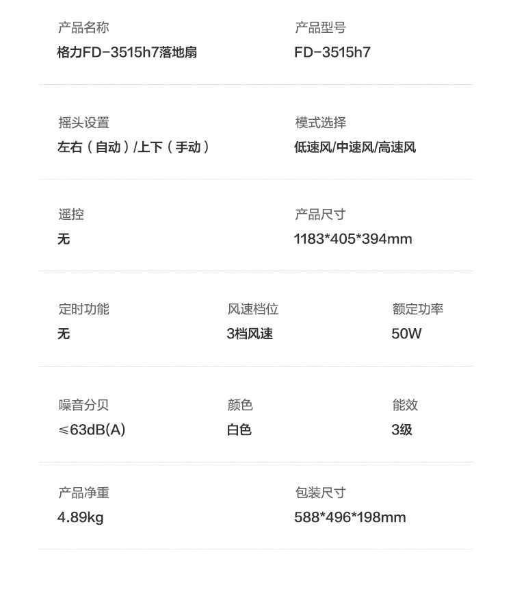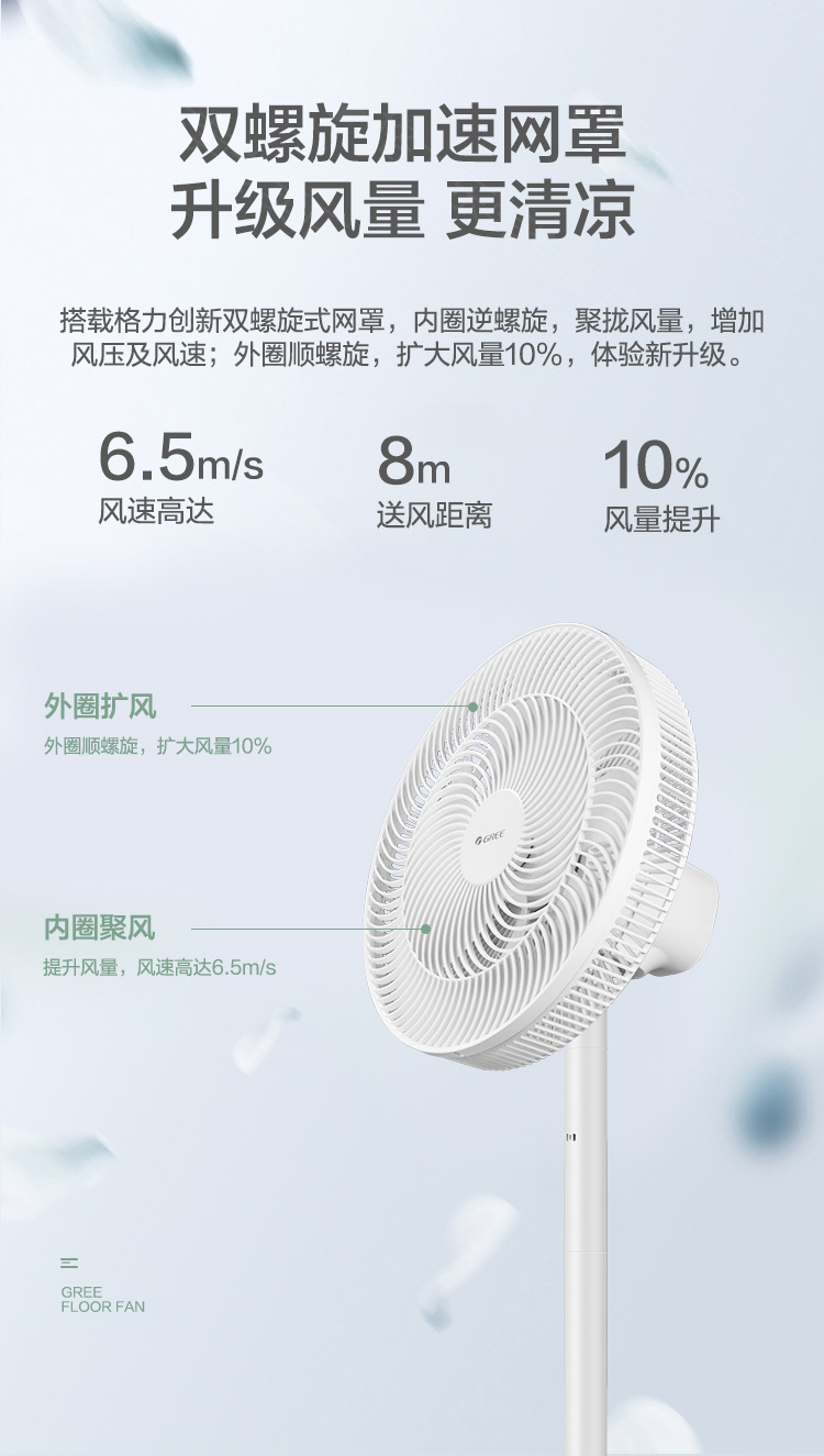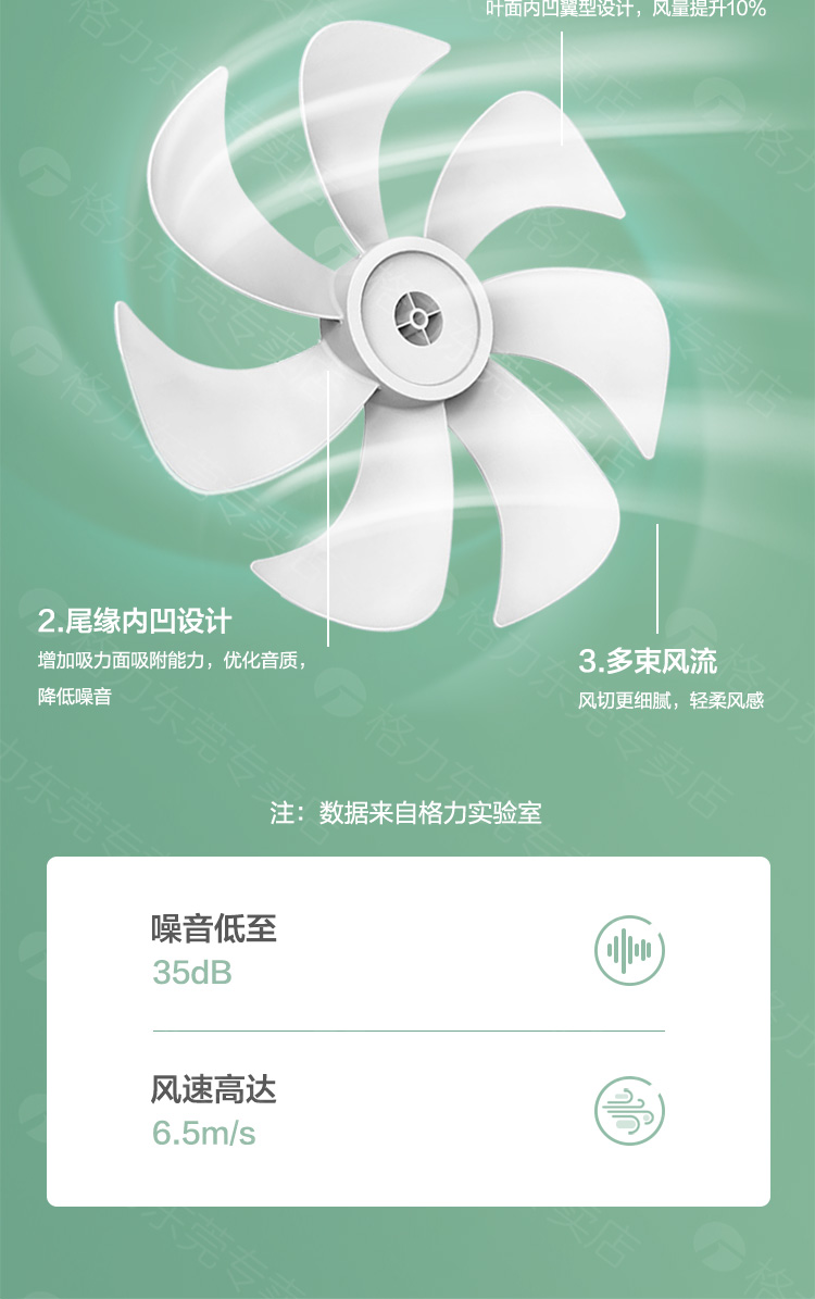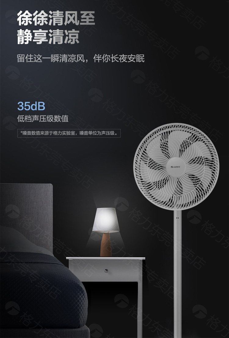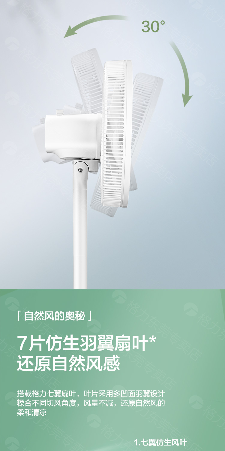 这款格力 静音电风扇,7叶仿生扇叶设计,相比3叶和5叶的送风更均匀、稳定、柔和;采用50w紫铜4S电机,节能低耗,工作时噪音较小,更稳定,使用寿命更长。