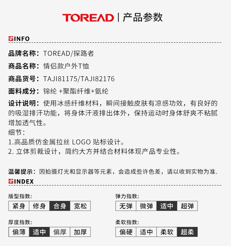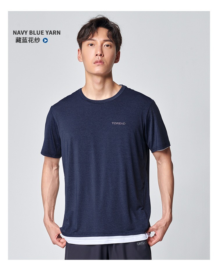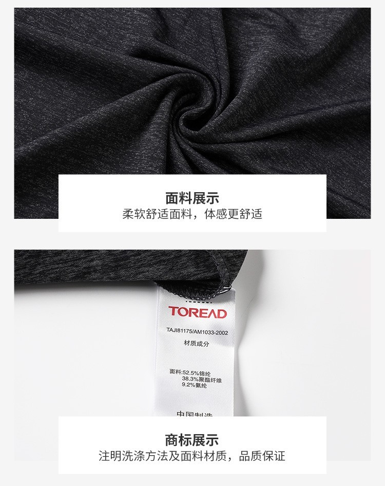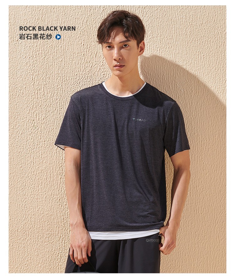 这款探路者男运动T恤是2020年的春夏款,使用锦纶+聚酯+氨纶的混纺速干面料,在瞬间接触皮肤时有明显凉感,有良好的的吸湿排汗功能,能将身体汗液排出体外,保持运动时身体舒爽不粘腻。