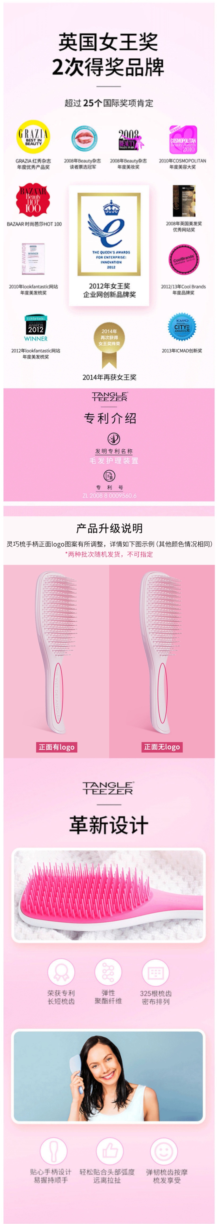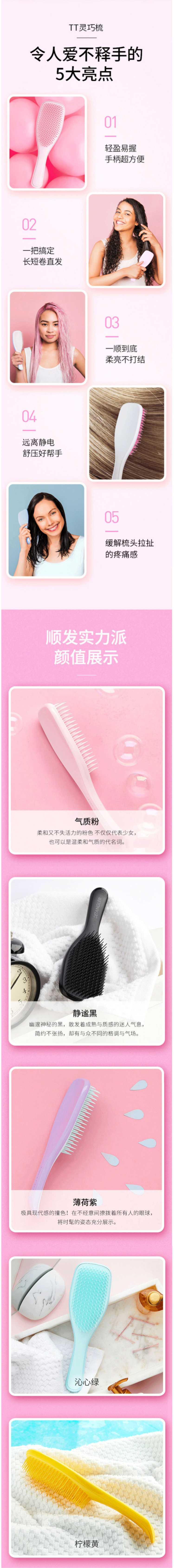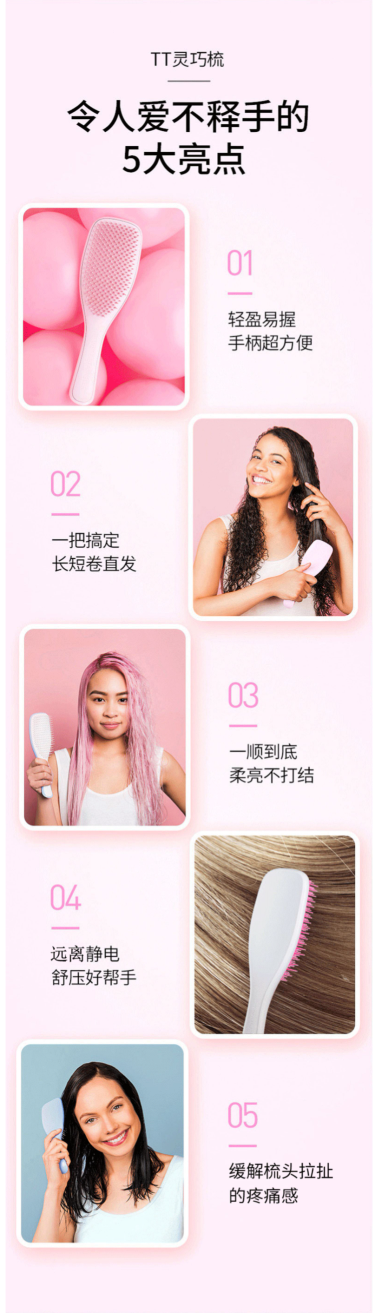 这款Tangle Teezer TT王妃梳,非常利于便携,大面积特别的梳齿结构,带来普通梳子不具备的顺发效果,造型完美贴合头皮曲线,起到舒压按摩的作用,防静电材质,不伤头皮,居家旅行携带方便。
