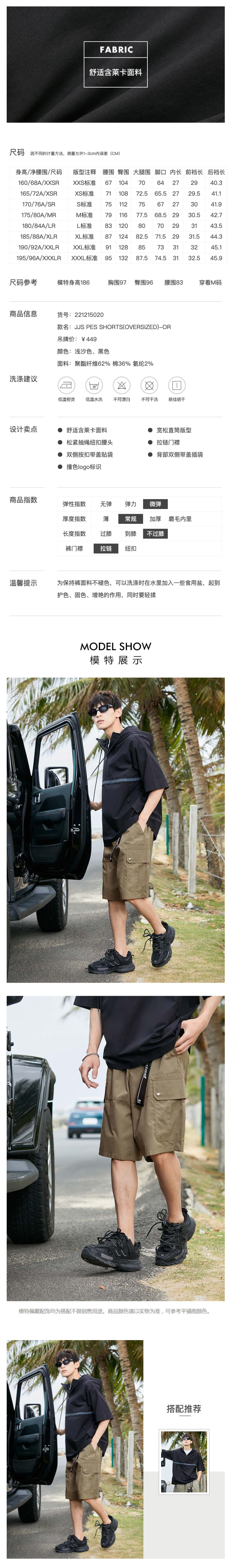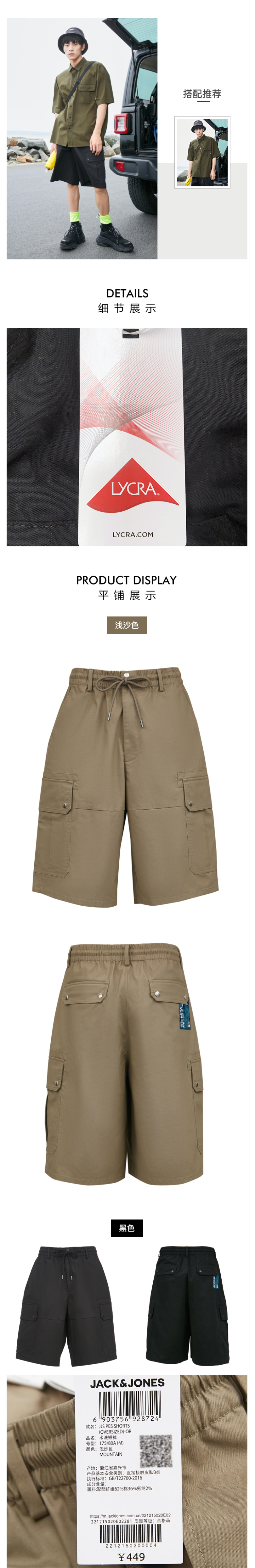 这款杰克琼斯男夏季薄款宽松短裤,是2021年新款,使用62%聚酯纤维+36%棉+2%莱卡弹力的混纺面料,舒适透气,挺括抗皱,同时速干易打理。