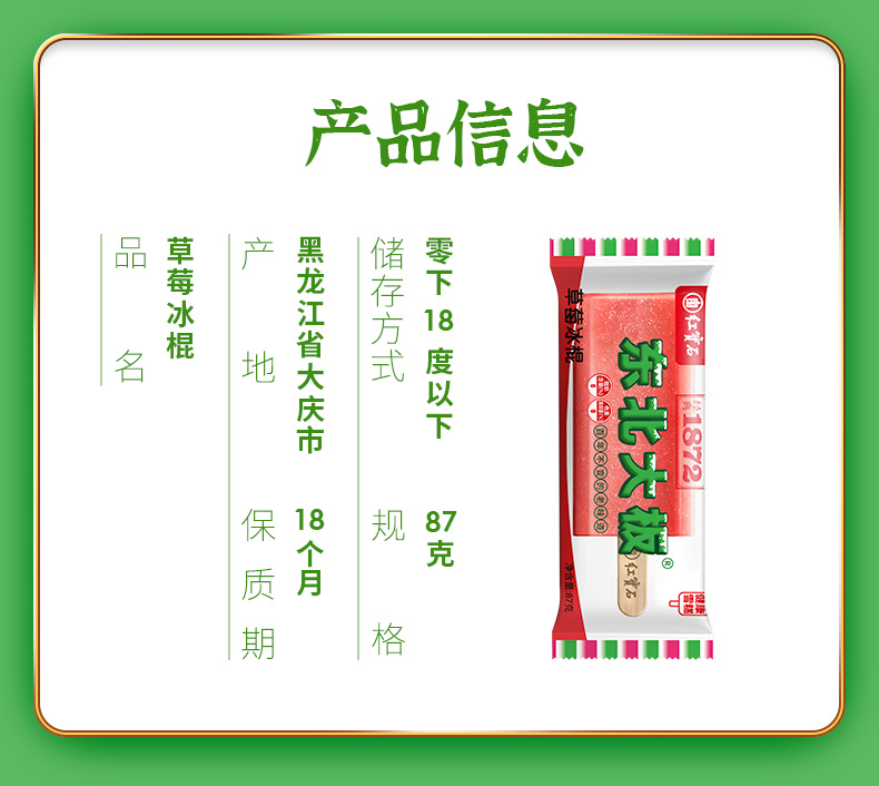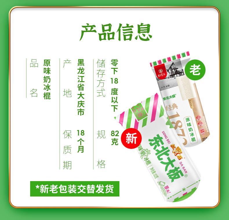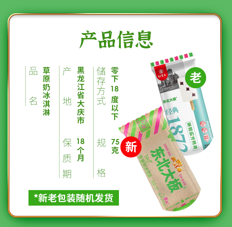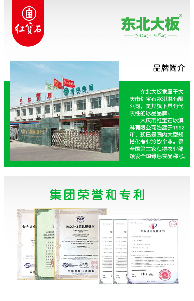 正宗的东北大板是 黑龙江大庆市红宝石公司产的,因为口味好,这么多年没变过,现在依然很畅销。这款全家福系列,一次尝尽多种口味,清凉美味。收货后若发现融化,30分钟内联系客服,可包赔。