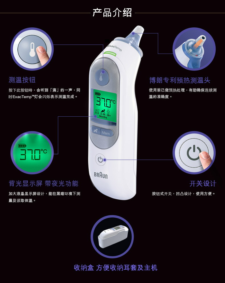 传统体温计需要5分钟测量时间,对于好动的宝宝来说用起来非常不方便,不过,耳温枪的出现解决了这一问题。BRAUN 博朗 IRT6520 是14年上市的旗舰机型,也是目前博朗最高端的型号。