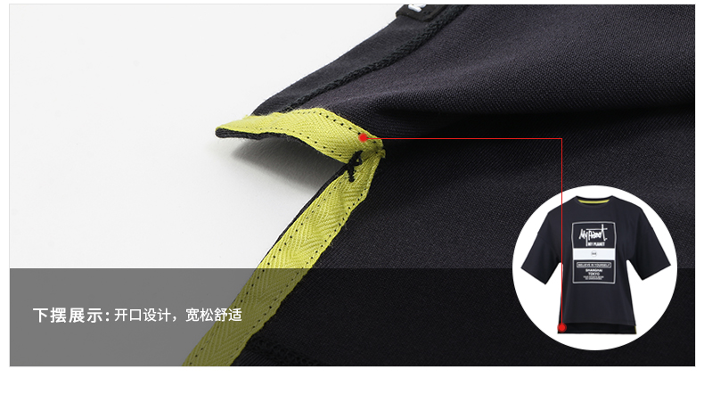 在款式上,腰部微收的宽松版型,前身是黑白印花,时尚简约。后脖颈是无感标签,不会刺激到脖子,同时后领还有本布防变形条,耐洗耐穿。袖口和下摆是双车线工艺,走线流畅不易脱线,牢固不易变形。