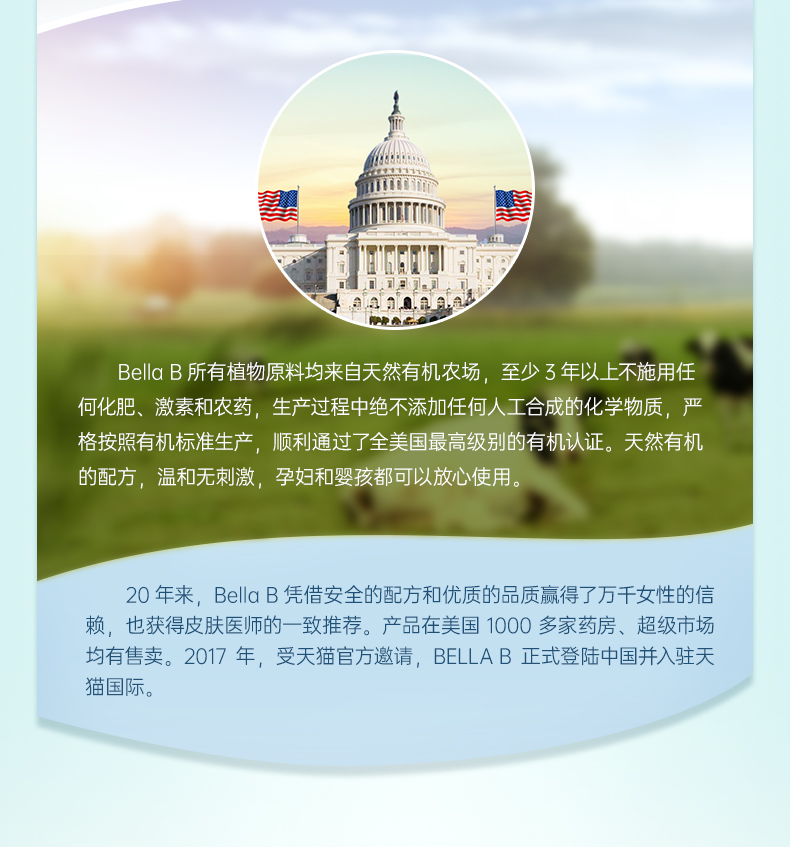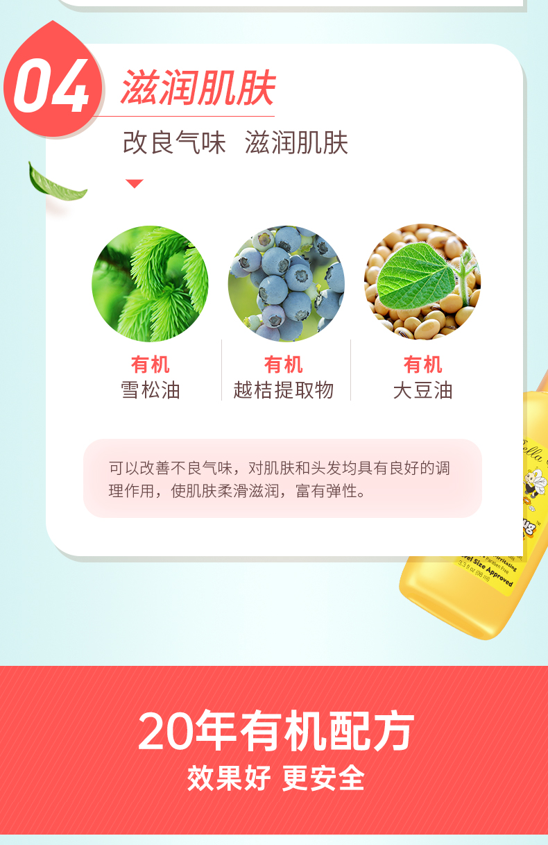纯天然有机植物配方,无刺激性气味,是美国国家养育中信颁发的质量金奖得主,宝宝孕妇可用,品质安全可靠。