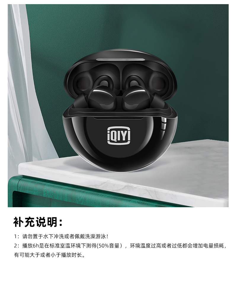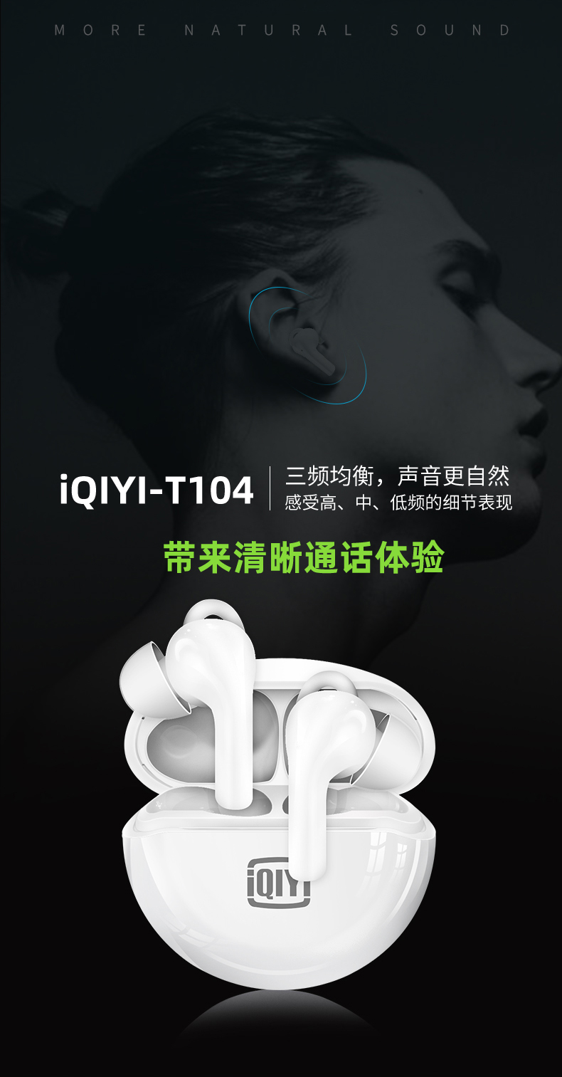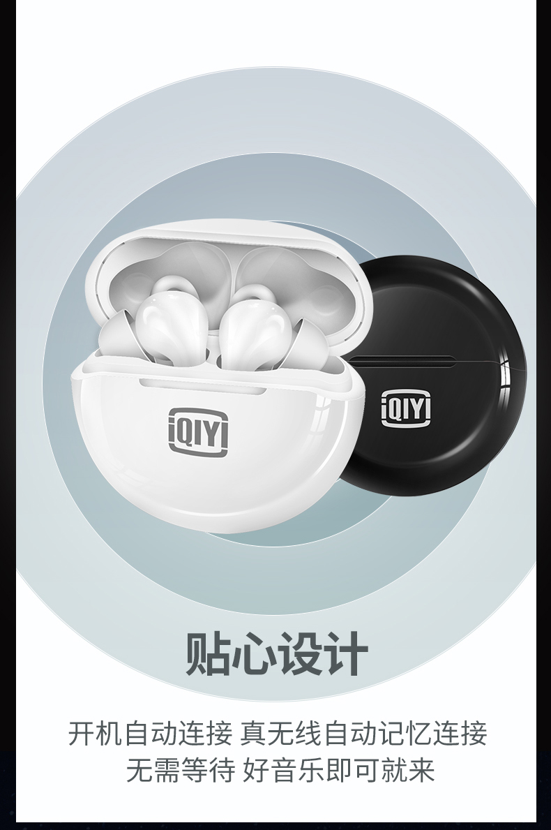 爱奇艺倾情调音,三频均衡,声音自然,具有清晰的声音和通话体验,内置蓝牙5.1芯片,双声道设计,长连接距离、低延迟,还有开机自动连接的功能,搭配充电仓最长能够实现26小时长续航,使用方便。