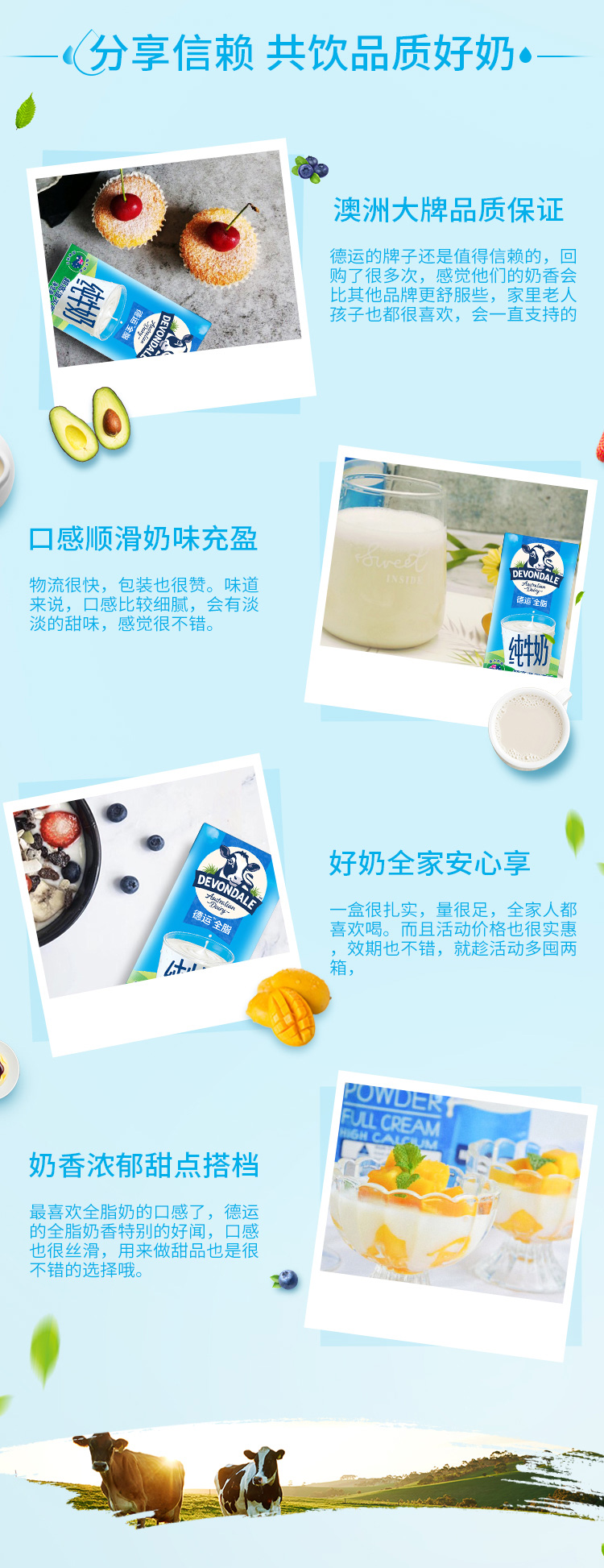 天猫超市89元,可领20元优惠券,实付69元到手;澳洲拥有全世界最顶级的奶源牧场,而德运作为澳洲本土奶使用的澳洲当地的奶源。奶牛全是产乳量非常高纯种荷斯坦奶牛,以纯天然放养的方式进回行饲养,不添加任何人工添加剂。澳大利亚进口德运全脂纯牛奶,奶牛自然放养,入口醇厚,口感顺滑,奶香浓郁。