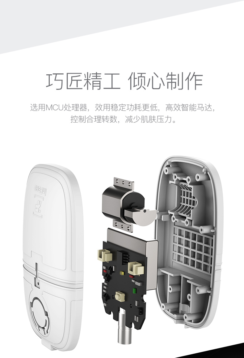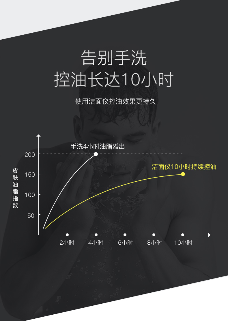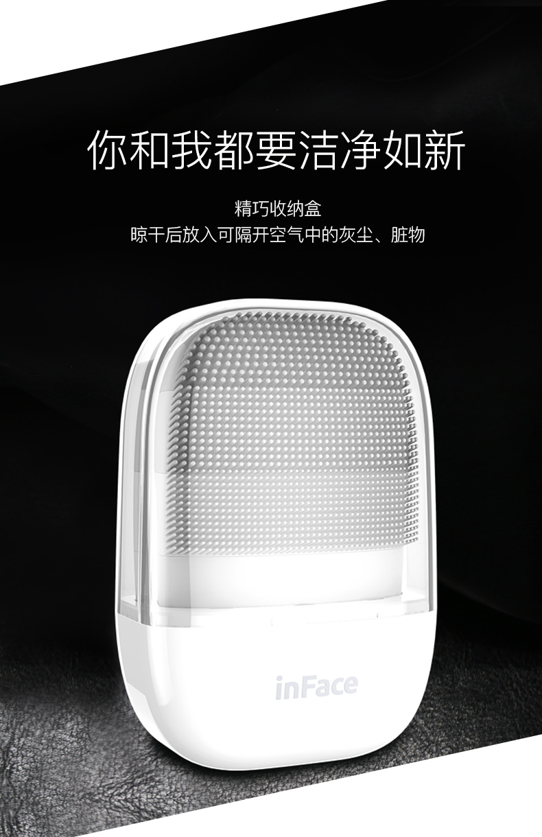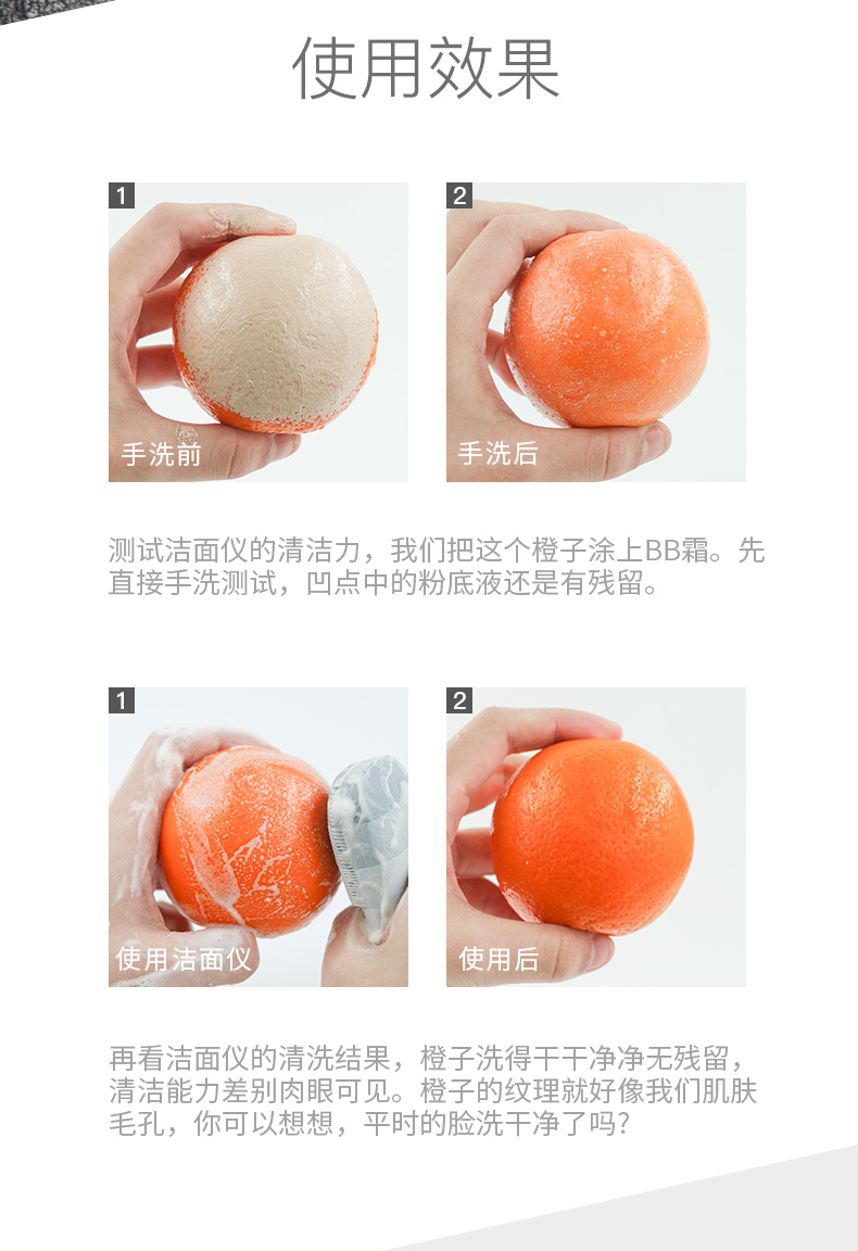 道康宁食品级硅胶刷毛,加厚硅胶延长触点。15度角刷毛,贴合毛孔生长角度。三种震动强度,应对不同肤质。整机IPX7级防水,根据刷毛的粗细分出三个区域,由上而下分别为精准清洁区、普通清洁区和深层清洁区,可以无死角清洁肌肤。刷头较大的可以用来清洁T区容易出油的地方,刷头较小的清洁脸颊,最细的用来清洁黑头。
