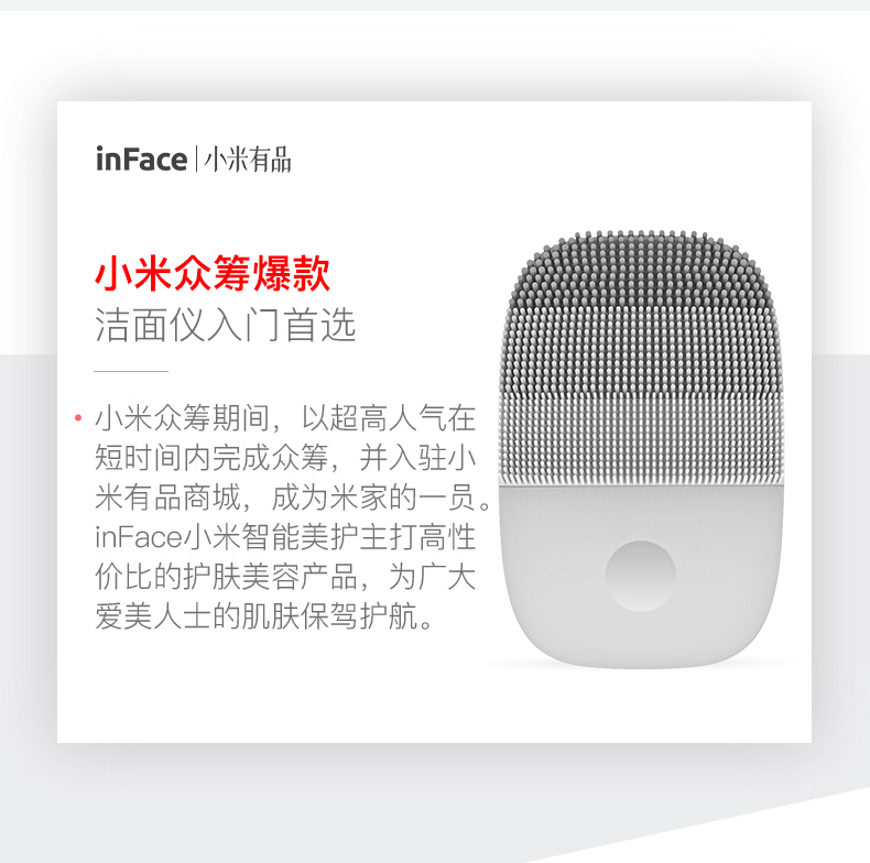 天猫超市109元,下单立减10元,可领10元优惠券,实付89元到手,小米有品众筹款洁面仪,与Luna同一供应商,性价比超高,男士洁面仪,质感灰色,小巧机身。声波震动清洁,深入清洁肌肤,持久控油长达10小时,清洁迅速,整脸每次使用90秒即可。